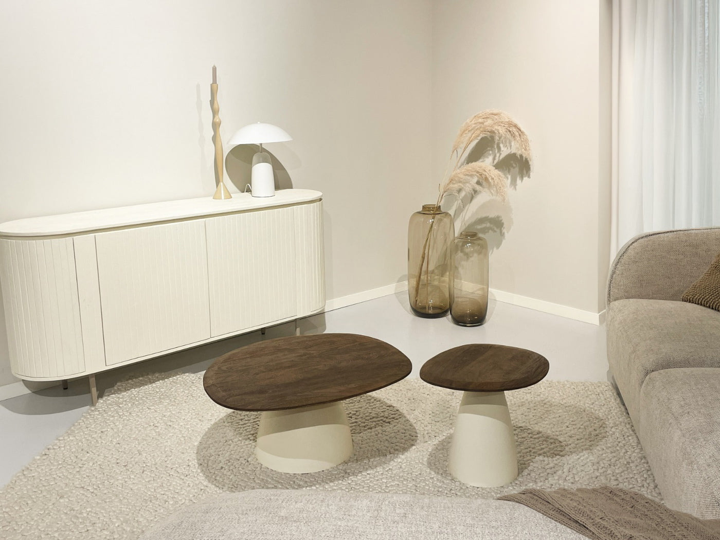 De Livingfurn Salontafel Brix Marron is een prachtige toevoeging aan je interieur. Met zijn Mid Century stijl en ivoorkleurige afwerking is het een echte eyecatcher. Het tafelblad is vervaardigd uit duurzaam mangohout, wat niet alleen een warme uitstraling geeft, maar ook bijdraagt aan een milieuvriendelijke keuze. Het organische ontwerp en de beige metalen onderstel maken deze salontafel zowel stijlvol als stevig. Perfect voor dagelijks gebruik in je woonkamer.