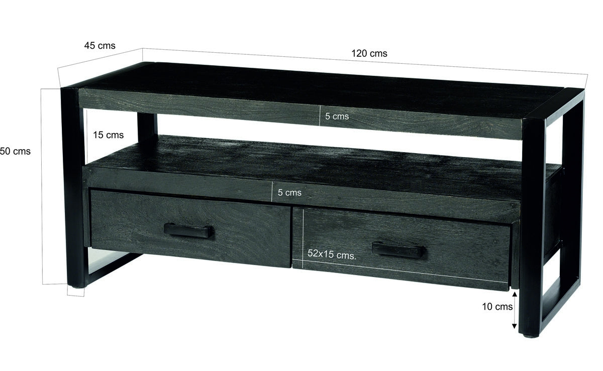 Livingfurn - Tv-Meubel Zwart Mangohout - 120x45x50cm - Norris