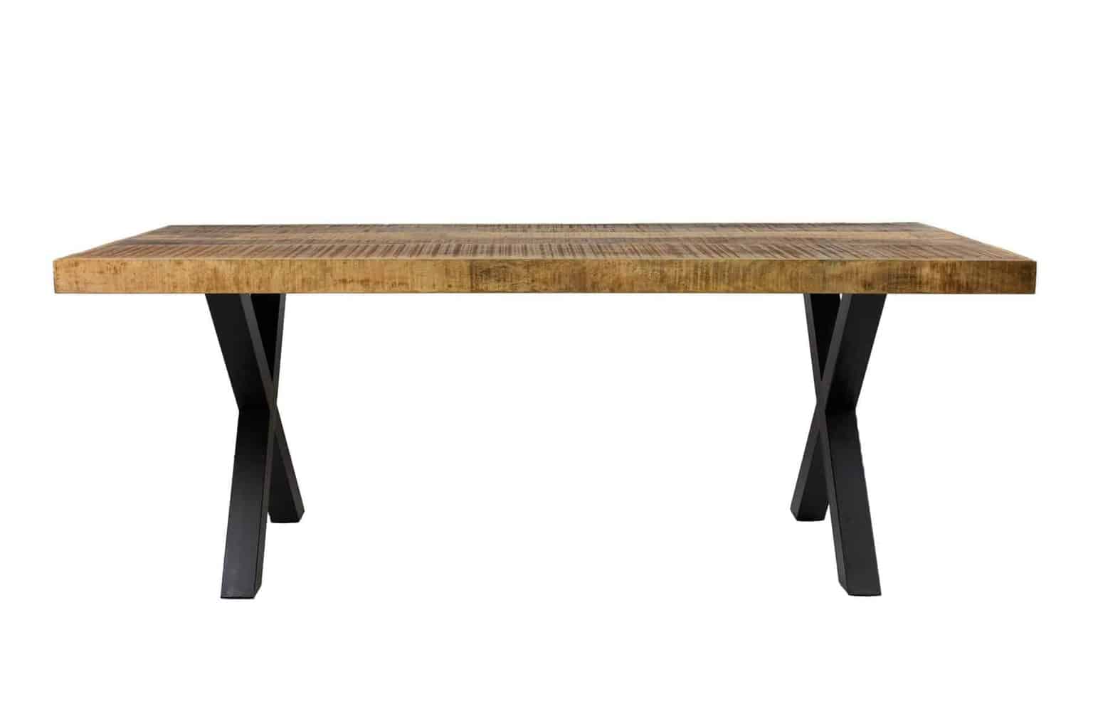 Het middelpunt van gezelligheid creëer je met deze mangohout eettafel Brut 200 x 100 cm van Liviza. Mangohout eettafel Brut 200 x 100 is een robuuste eettafel met vintage uitstraling en geeft jouw interieur een boost. De industriële uitstraling zorgt ervoor dat deze eettafel geschikt is voor elk interieur. Een eettafel heeft vaak een centrale plek in het interieur. Met deze mangohout eettafel Brut 200 x 100 cm van Liviza creëer je al snel een stijlvolle en fijne plek in huis om samen met familie en vrienden gezellige momenten te beleven. Het rechthoekige tafelblad is gemaakt van mangohout en heeft een open onderkant. De warme bruintint van het tafelblad in combinatie met de zwart stalen kruispoten zorgen voor een stoere en industriële look. Mangohout eettafel Brut 200 x 100 cm is een tijdloos product en past uitstekend in verschillende typen interieurstijlen.