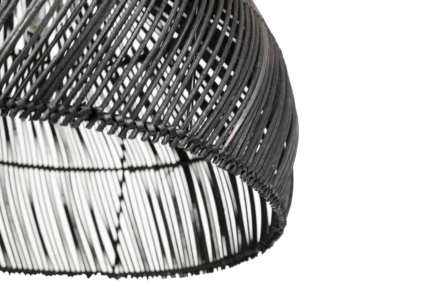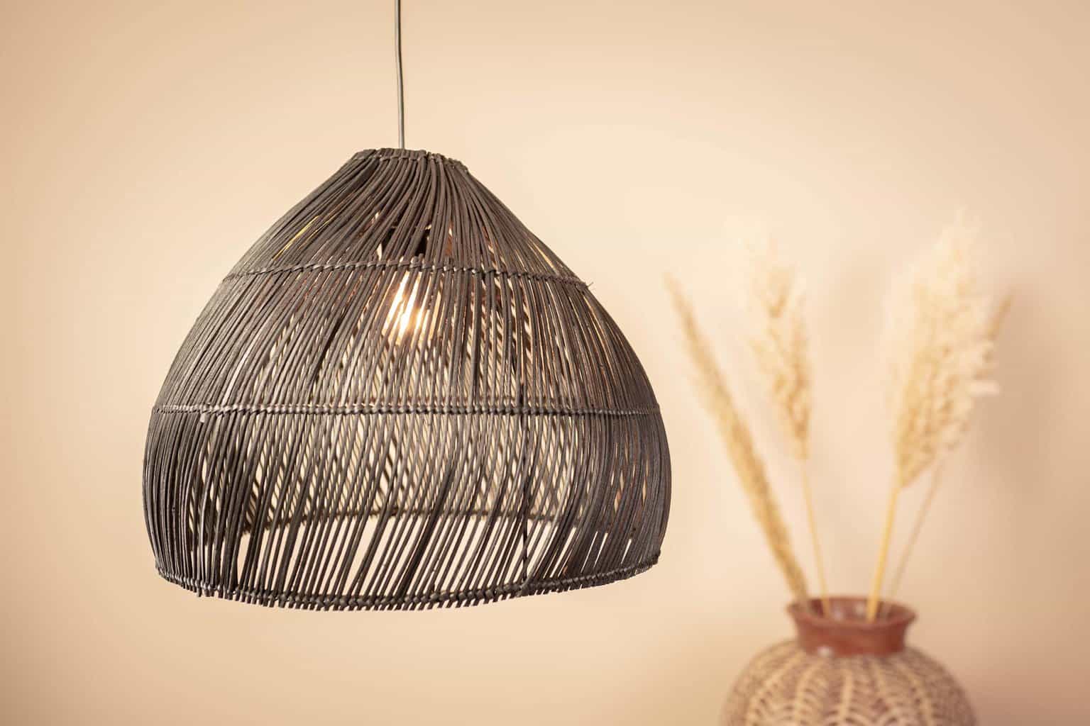 Deze opvallende zwarte rotan hanglamp Selas is een echte blikvanger in ieder huis. Zwarte rotan hanglamp Selas heeft een prachtig gevlochten patroon. Een zwarte rotan lamp steelt de show en past perfect in een bohemian, landelijk of zelfs modern interieur. Ook in 2022 blijft de woontrend: natuurlijke materialen in huis. De kleur zwart is zowel klassiek als stoer, maar ook elegant tegelijk. Door het gebruik van zwarte hanglampen geef je jouw huis wat extra contrast. Lampen die gemaakt zijn van natuurlijke, duurzame materialen zijn helemaal ‘in’. Juist omdat de lampen gemaakt zijn van natuurlijke producten straalt dat meteen veel warmte uit en geeft het een gezellige sfeer aan jouw ruimte. Lampen van rotan met gaatjes laten het licht door en dat geeft een heel mooi effect op de muur. Niet alleen het licht, maar ook de schaduw die het geeft creëert een bijzondere sfeer.