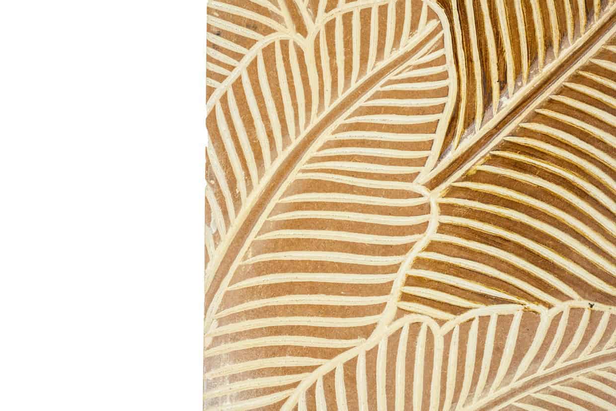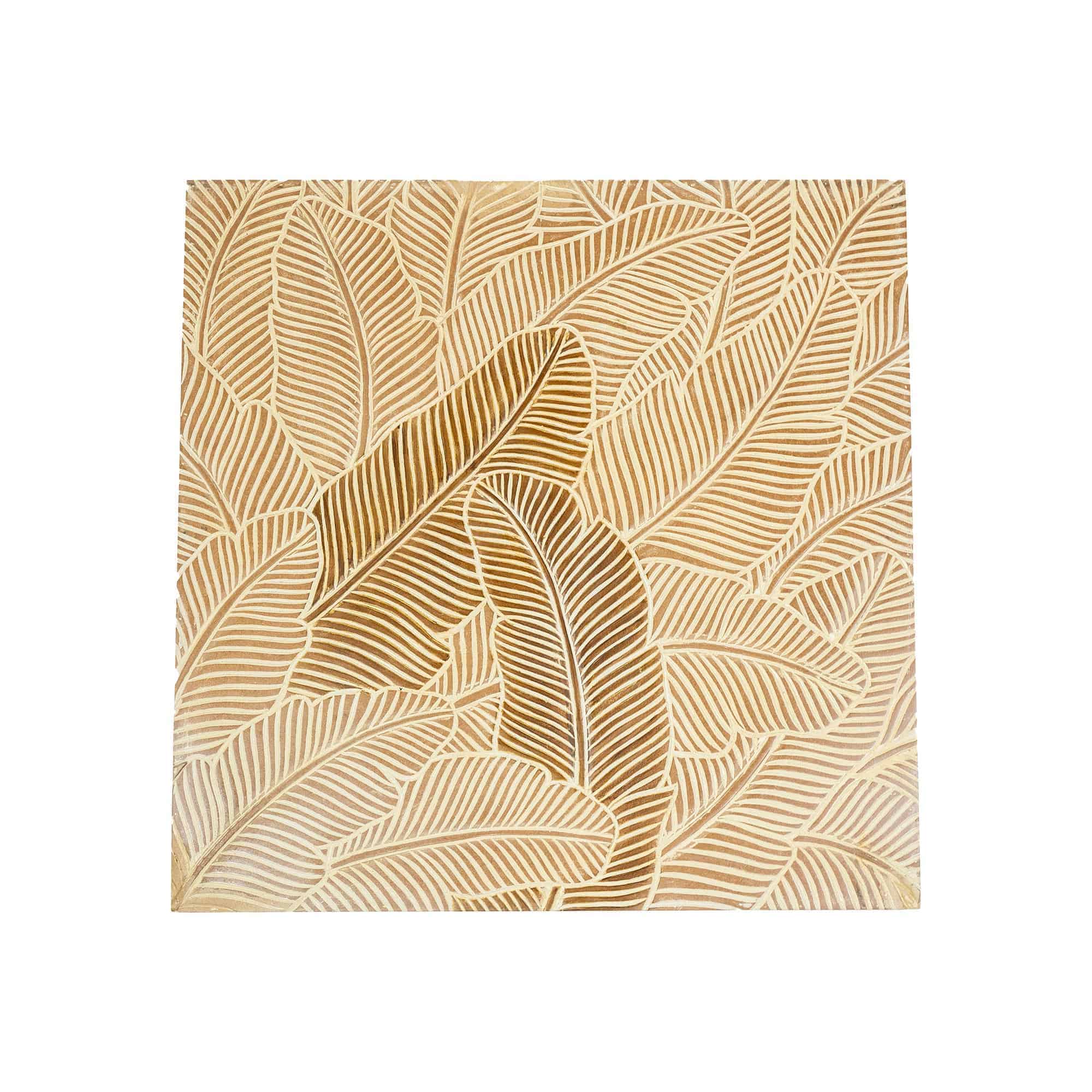 Deze houten muurdecoratie is gemaakt van natuurlijk materiaal, namelijk van Albasia-hout. Een van de lichtste houtsoorten die er is. Het unieke bladeren patroon is met de hand in het hout gegrafeerd, zo is elk item uniek. De wanddecoratie hout heeft een grote van 80 bij 80 cm, door het ophangen van deze vierkante wanddecoratie heeft je woonkamer in een oogopslag meer sfeer, warmte en gezelligheid. De neutrale kleuren van de wanddecoratie zorgen er voor dat het wandobject past in verschillende interieurstijlen zoals in een japandi, landelijk of Scandinavisch interieur.