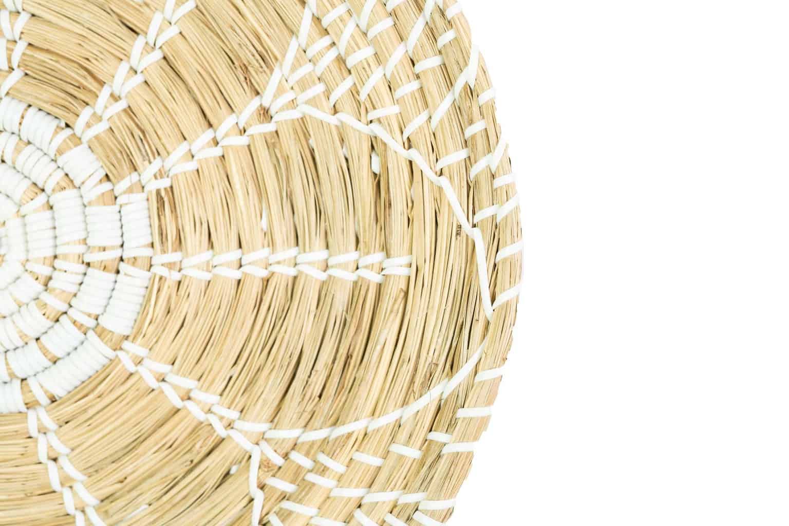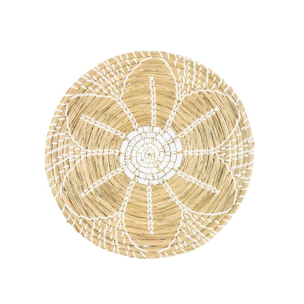 Zeegras muurdecoratie witte bloem is iets bijzonders voor aan de muur. Deze muurdecoratie is gemaakt van zeegras, waar een patroon in de vorm van een bloem doorheen is geweven. De schaal heeft een kleuren combinatie van wit met een natuurlijke zeegras kleur. Zeegras muurdecoratie witte bloem is geschikt voor in de woonkamer, slaapkamer of hal en voorziet jouw ruimte van extra sfeer. Het decoratieartikel past uitstekend in een natuurlijk, landelijk, bohemian, botanical of Ibiza-interieur. Maak jouw interieur compleet met deze wanddecoratie van Liviza.