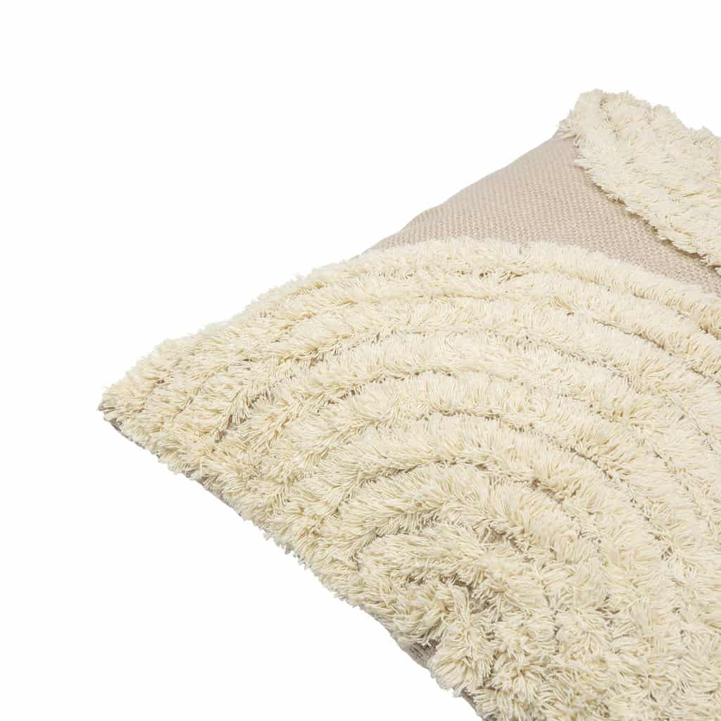 Sierkussen golvend getuft wit is gemaakt van een combinatie van linnen en polyester. Polyester is een materiaal wat erg geschikt is voor het maken van sierkussens. Zo is polyester huidvriendelijk, warmte werend en gemakkelijk te reinigen. Sierkussen golvend getuft wit ziet er knus en uitnodigend uit. Sierkussen wit heeft een organisch patroon wat het kussen een speelse en moderne uitstraling geeft.