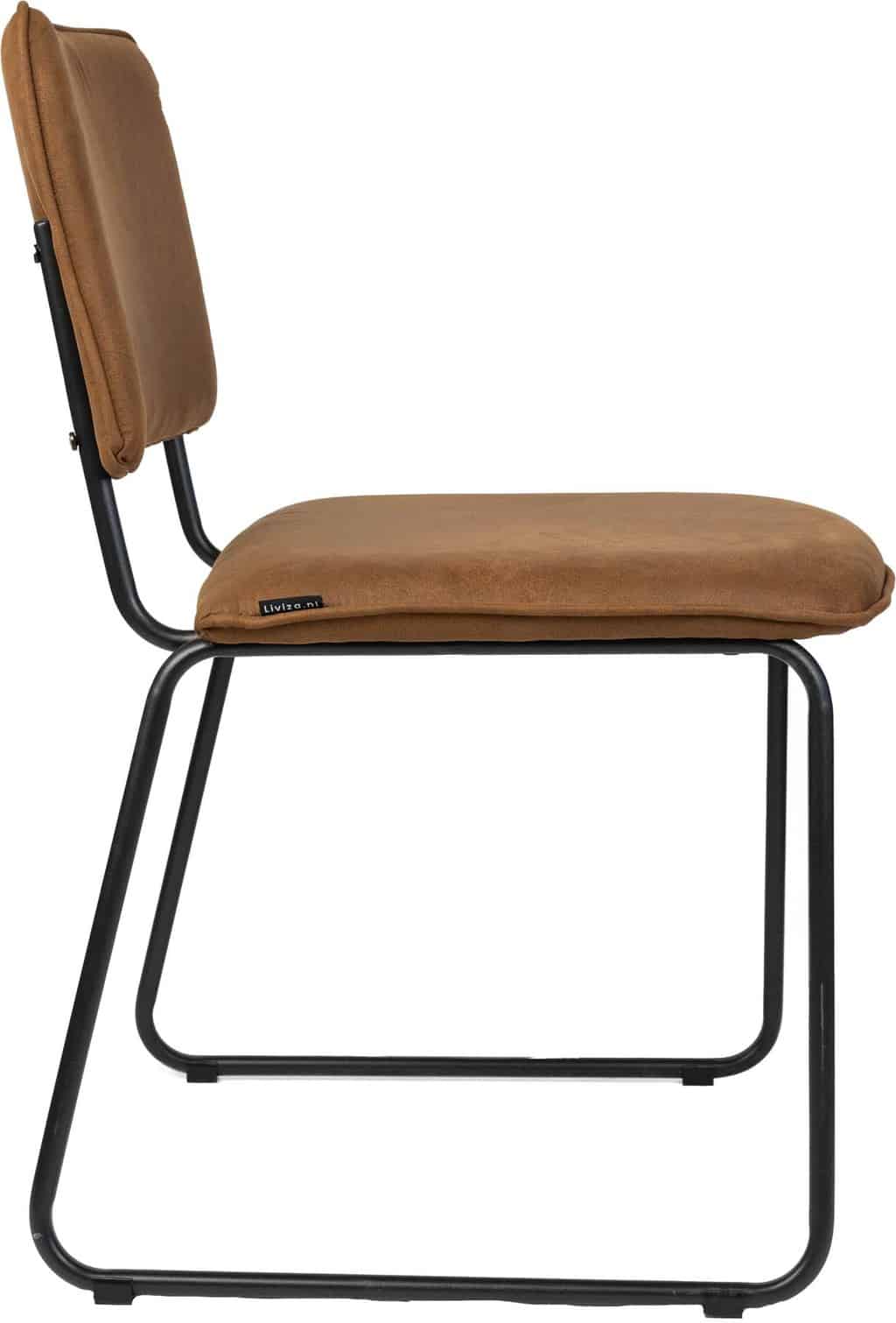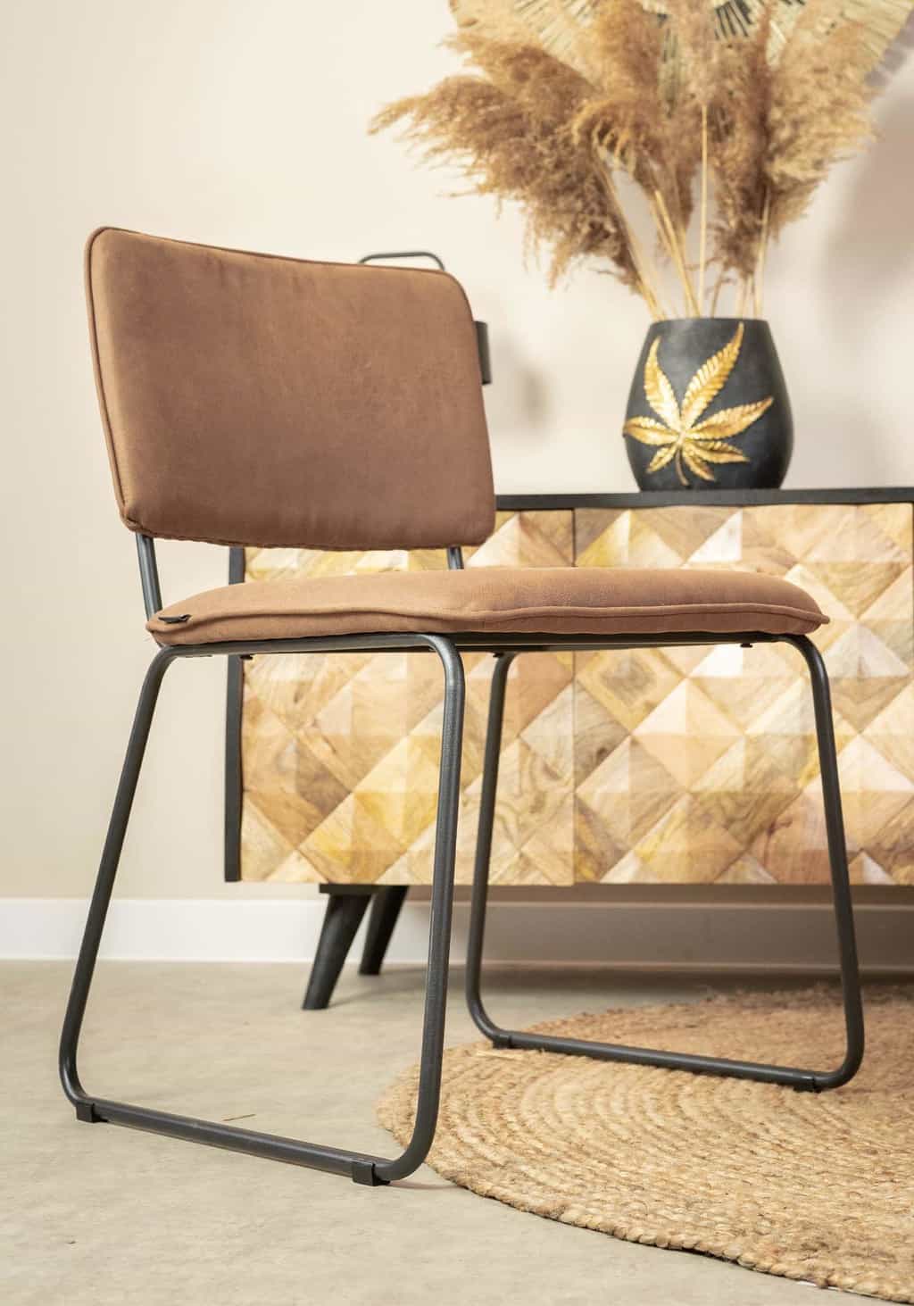 Waar koop je een sledestoel bruin? Bij Liviza natuurlijk! Sledestoel bruin Tassa is een eetkamerstoel van slijtvast en comfortabel suède leer en wordt ondersteund door een zwart stalen frame.