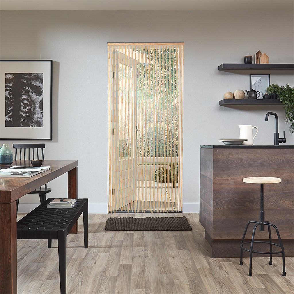 Vul je jouw woning graag met frisse lucht door de achterdeur regelmatig open te zetten? Helaas zien ook insecten dit vaak als een uitnodiging om naar binnen te komen. Met het Livn deurgordijn Nature is dit verleden tijd! Het speelse vliegengordijn bestaat uit een houten bovenrail en slierten gemaakt van korte bamboestokjes afgewisseld met kralen. Dit maakt het gordijn uniek en geeft een speels effect. Het bamboe deurgordijn is dus niet alleen handig, maar ook een mooie decoratieve toevoeging aan jouw interieur. Bovendien blijft het met een deurgordijn gemakkelijk voor huisdieren en kleine kinderen om naar binnen en buiten te lopen.