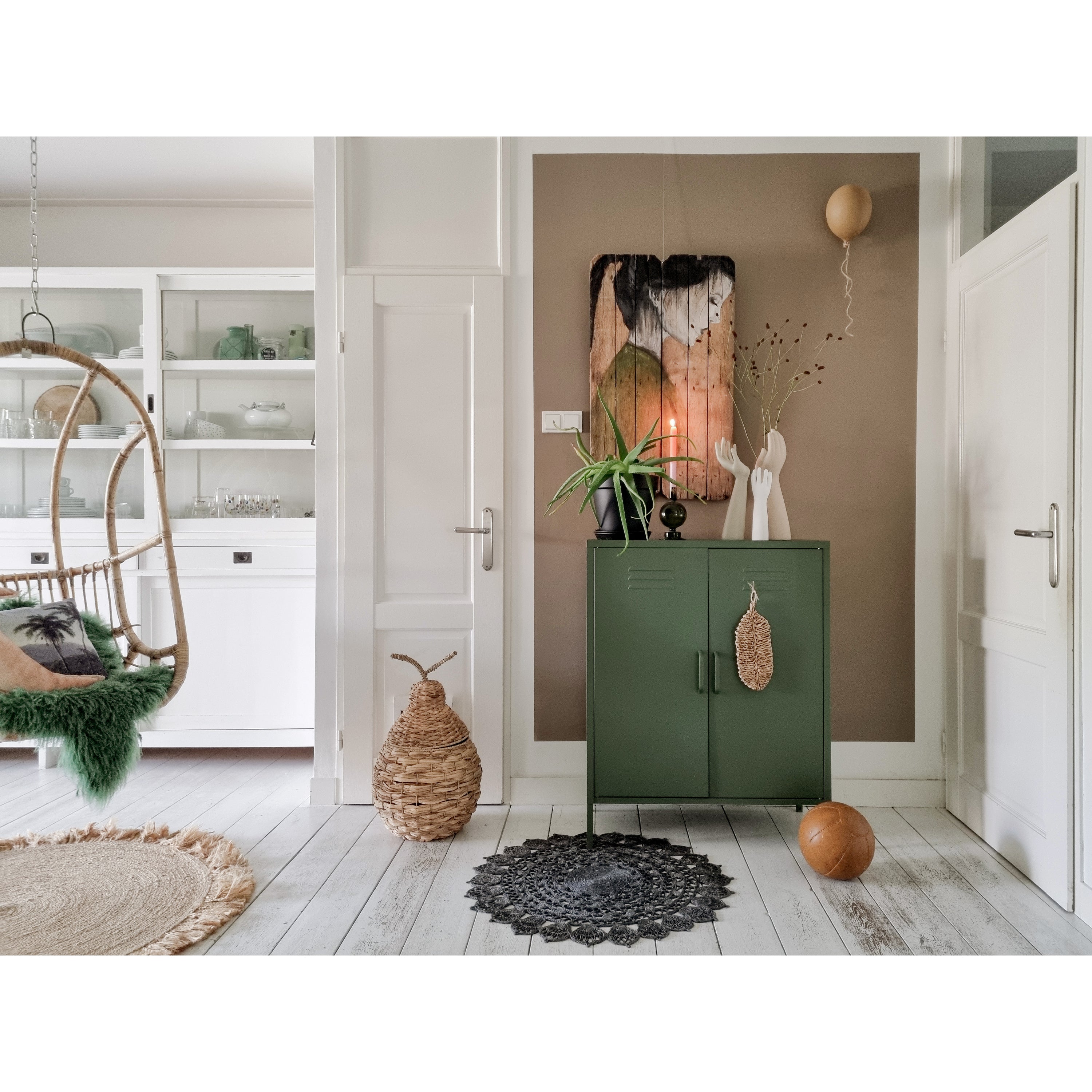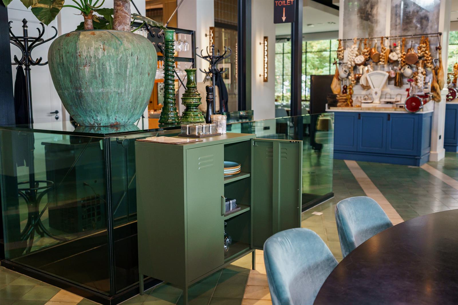 De lockerkast is enorm praktisch omdat je er veel spullen in kwijt kan en door zijn mooie kleur vrolijkt hij elk interieur op. De brede platte bovenkant van de kast biedt perfect de ruimte om je favoriete decoraties of planten neer te zetten. Nog een mooi vloerkleed eronder en het plaatje is compleet.sdfTevens hebben onze kasten stelvoetjes zodat je kast recht staat en je deuren goed sluiten.sdf