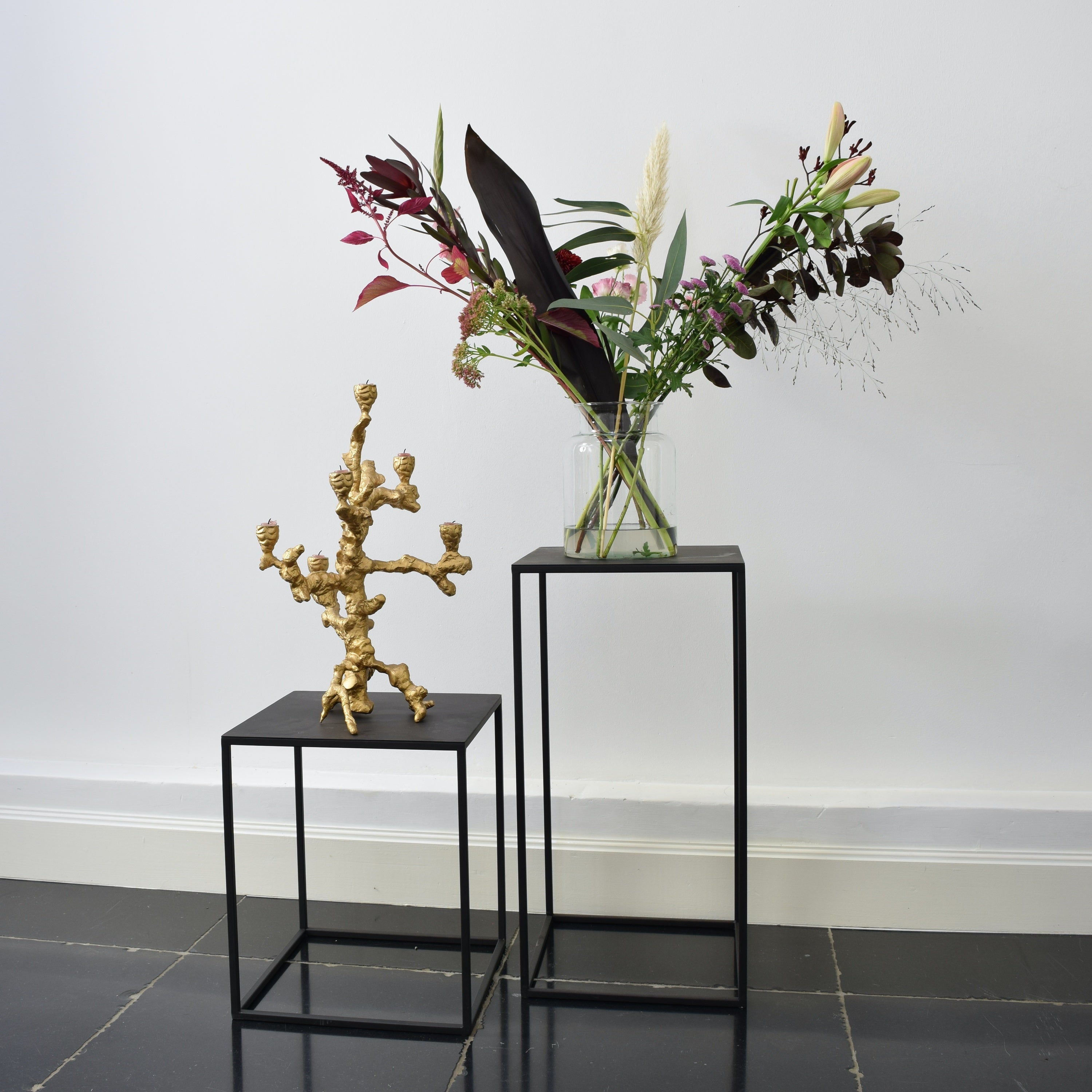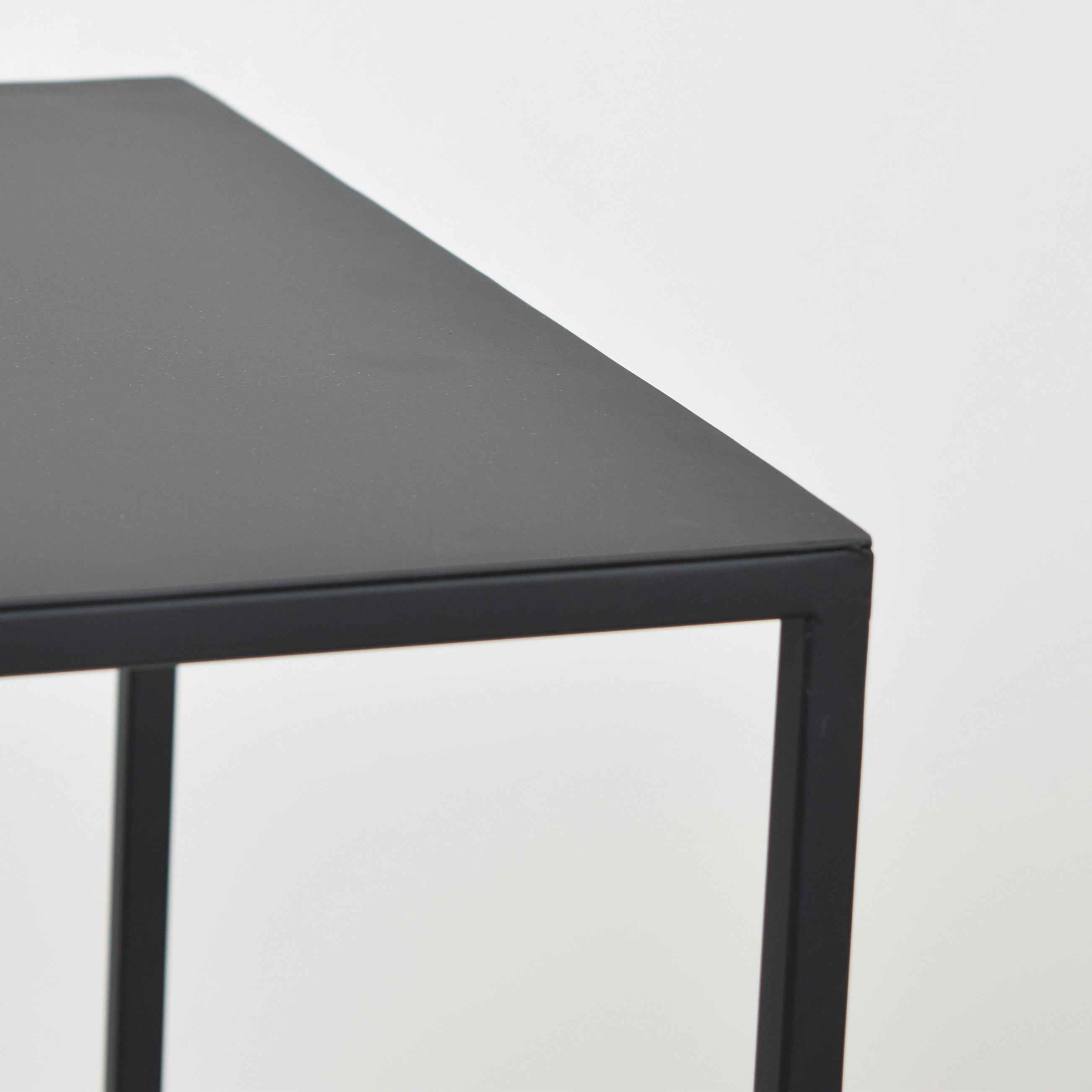 Bijzettafel Aron heeft een strak design en is vervaardigd uit zwart gepoedercoated metaal. Deze multifunctionele tafel kan gebruikt worden als koffietafel naast een bank of stoel, of als plantentafel.