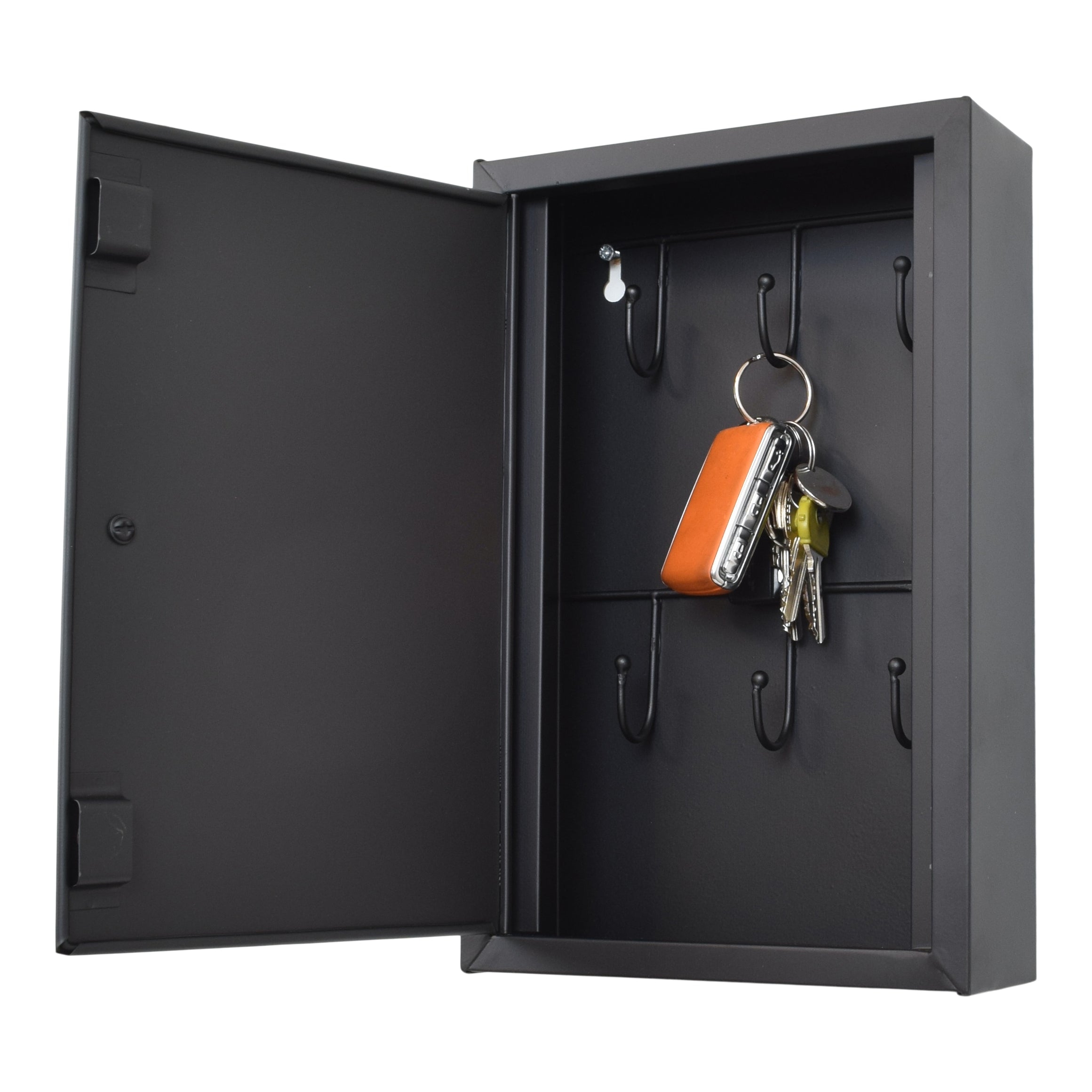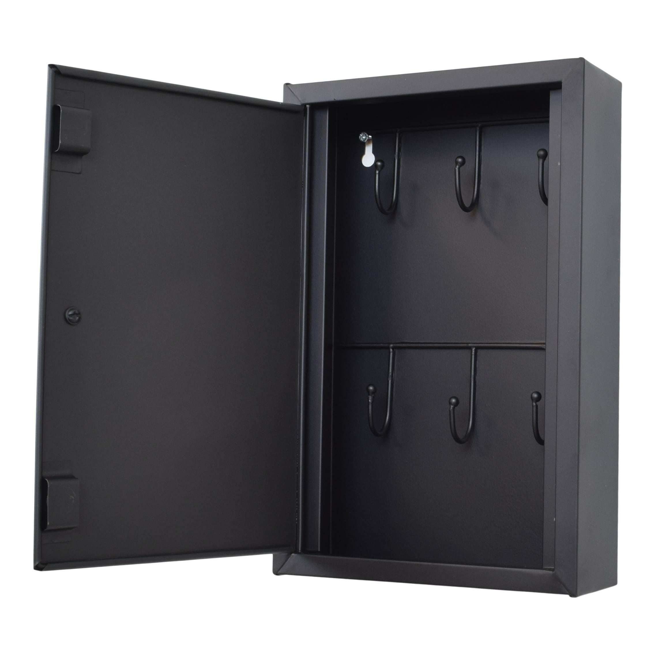 Het LOFT42 Cabi Sleutelkastje is gemaakt van stoer mat zwart metaal in de stijl van een industriële locker. In de binnenkant van het kastje zijn 6 haakjes bevestigd, die ruim voldoende ruimte bieden voor al jouw sleutels! Het kastje is gemakkelijk aan de wand te bevestigen middels de twee schroefgaten aan de binnenkant.