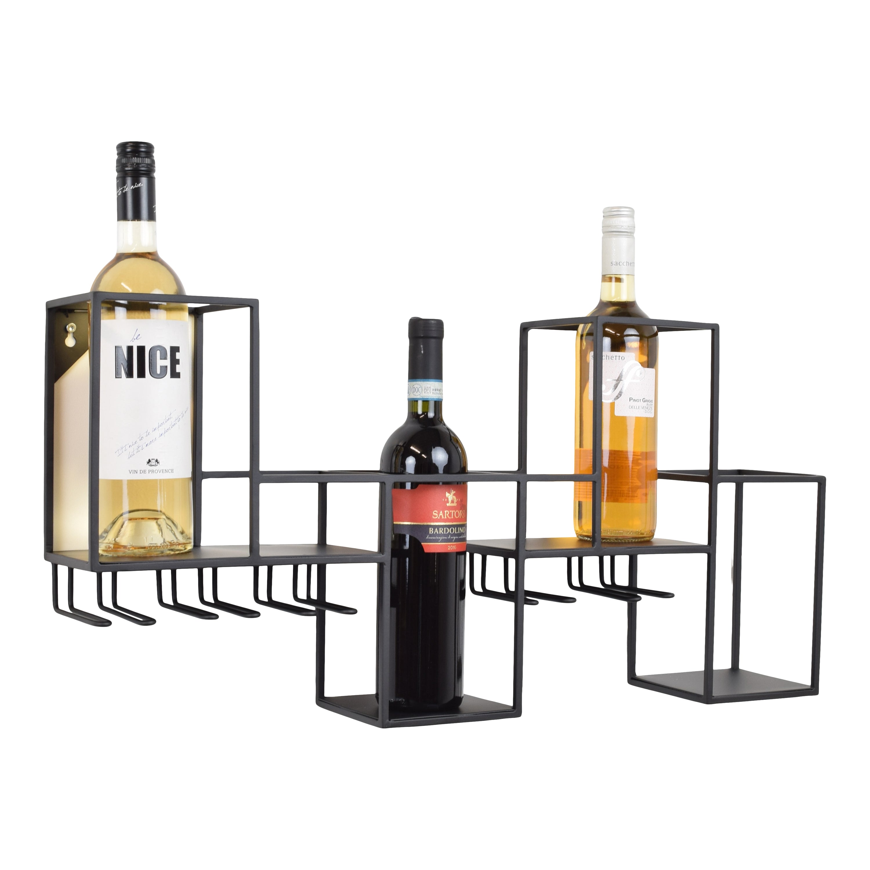 Zoek je een unieke manier om je wijnflessen en wijnglazen op een stijlvolle wijze te presenteren? Het LOFT42 Chardo Wandwijnrek biedt de perfecte oplossing. Dit moderne en elegante wijnrek, gemaakt van duurzaam zwart metaal, combineert opslag met een unieke uitstraling. Dit wandwijnrek is speciaal ontworpen om ruimte te besparen en tegelijkertijd een opvallend accent in je interieur te creëren. Met ruimte voor 4 flessen wijn die stijlvol rechtop kunnen worden geplaatst en houders voor 5 wijnglazen die aan de onderkant hangen, zorgt het LOFT42 Chardo wijnrek voor een elegante presentatie van je favoriete wijnen. Het zwart metalen frame geeft dit wijnrek een stoere en industriële uitstraling, terwijl de strakke lijnen en het eigentijdse ontwerp perfect passen bij uiteenlopende interieurstijlen. Of je nu een loft, een modern appartement of een klassiek huis hebt, dit wijnrek voegt een vleugje verfijning toe aan elke kamer.