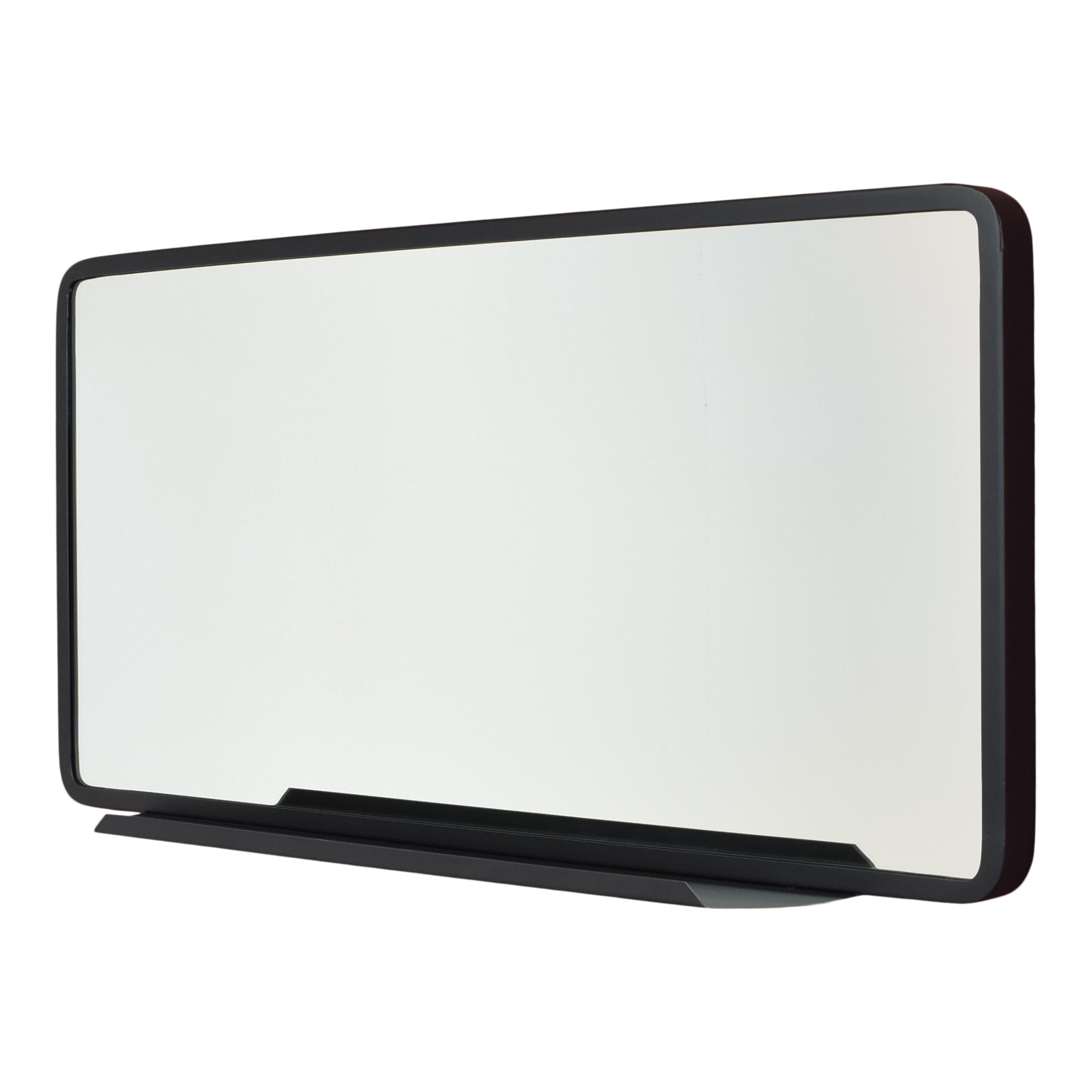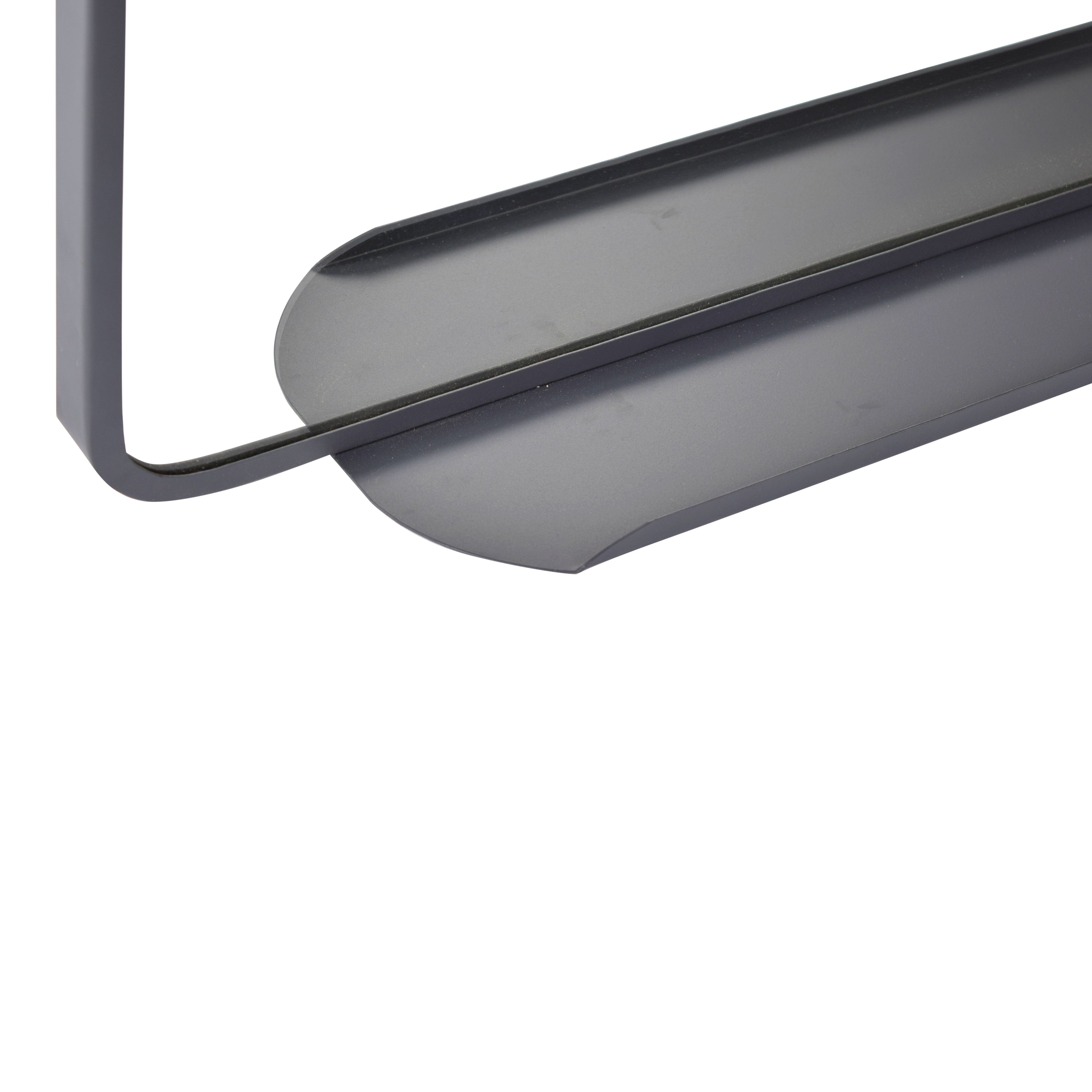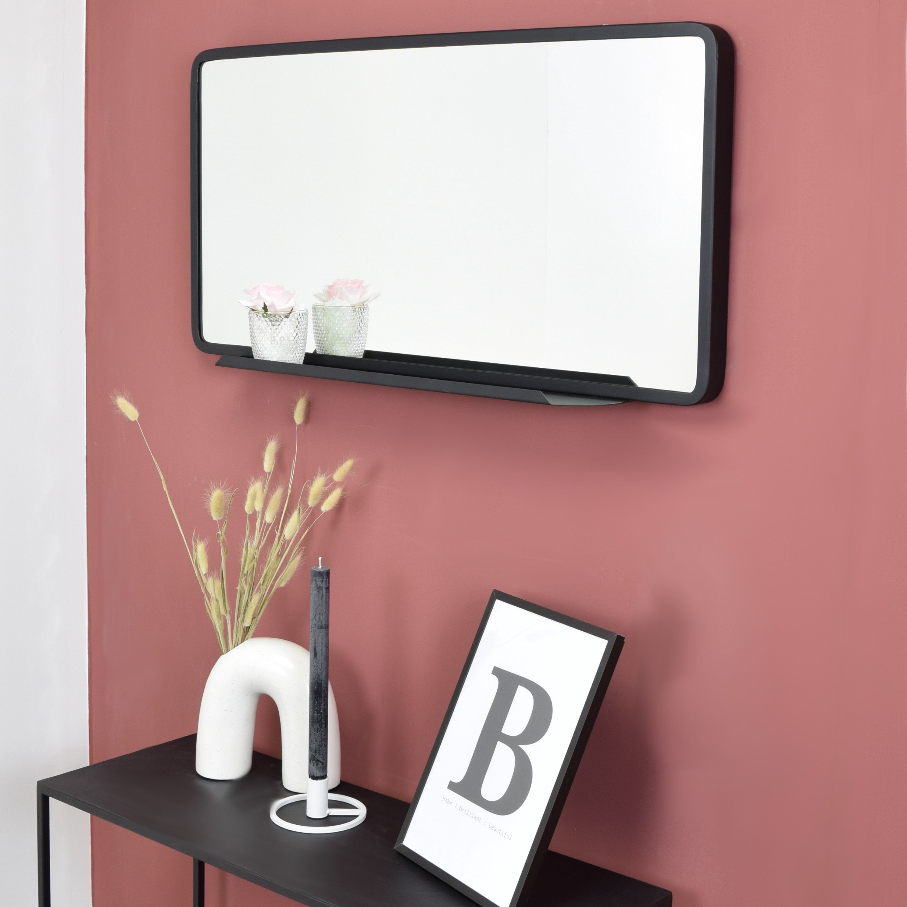 - Industriele rechthoekige spiegel met zwart metalen rand en plankje