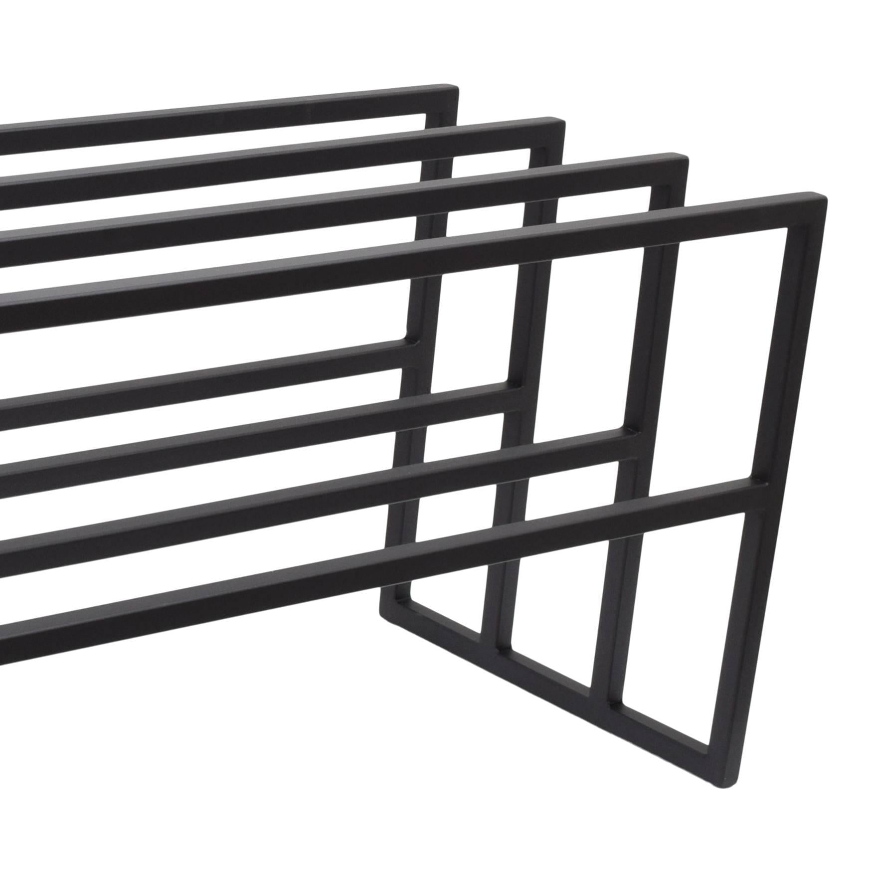 Word jij ook gek van al die rondslingerende schoenen? Een schoenenrek biedt uitkomst. Geef je schoenen een plekje in bijvoorbeeld de hal, slaapkamer of inloopkast. Het LOFT42 James Schoenenrek is een stoer robuust afgewerkt schoenenrek, vervaardig uit metaal. De mat zwarte poedercoating zorgt voor een strak en stoer uiterlijk. Het rek biedt ruimte voor maar liefst 6 paar schoenen.