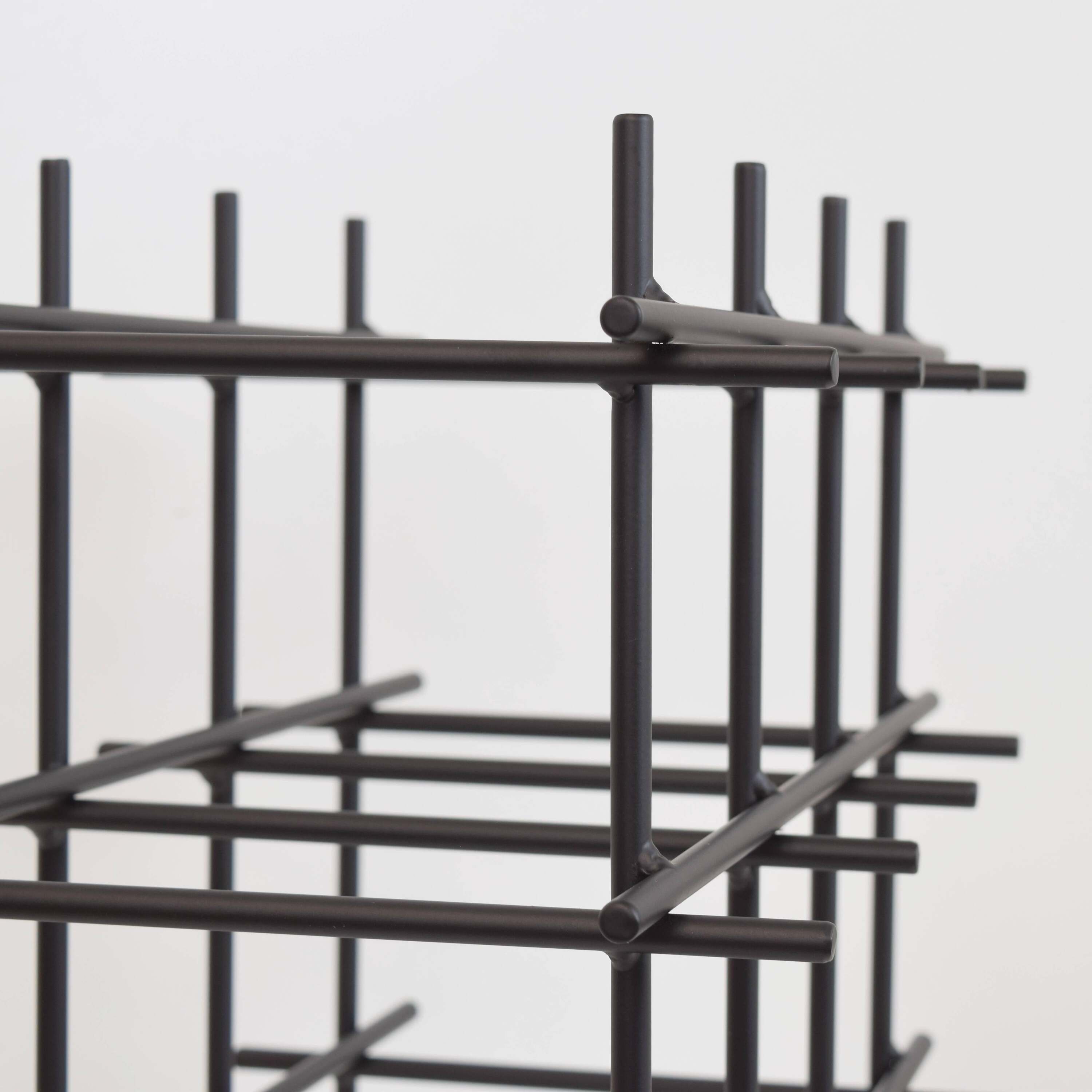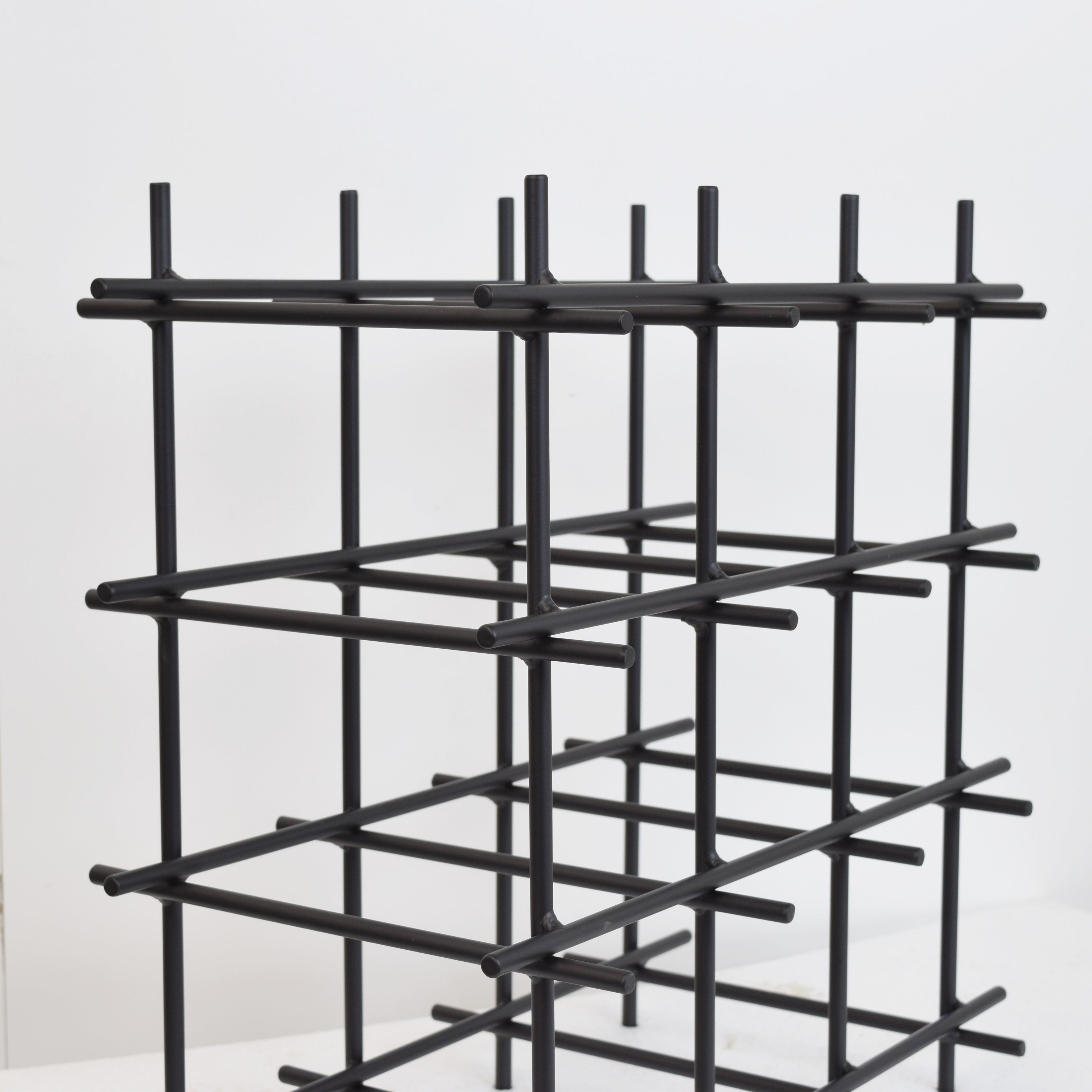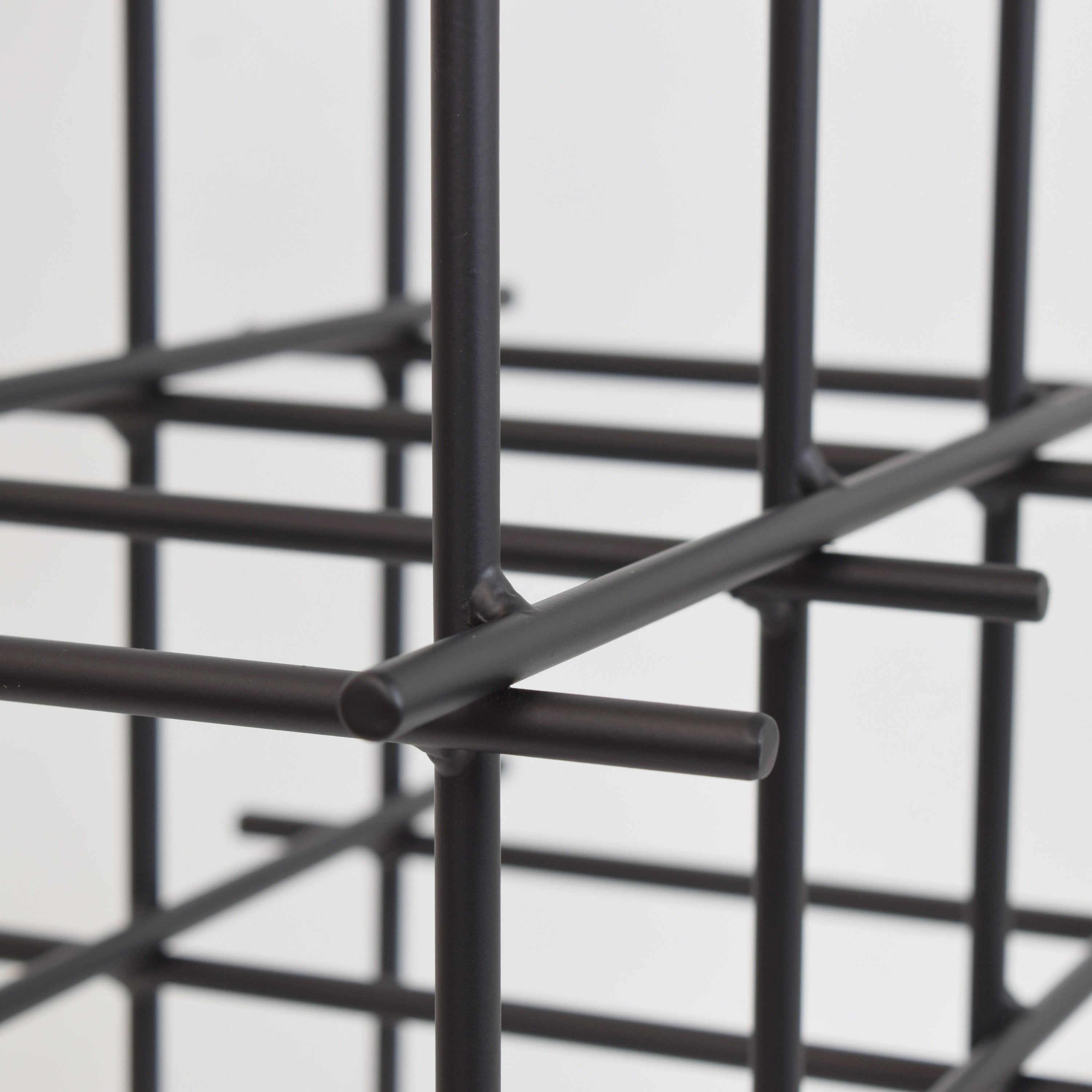 Dit moderne wijnrek biedt plaats aan 9 flessen en is gemaakt van gepoedercoat zwart metaal.