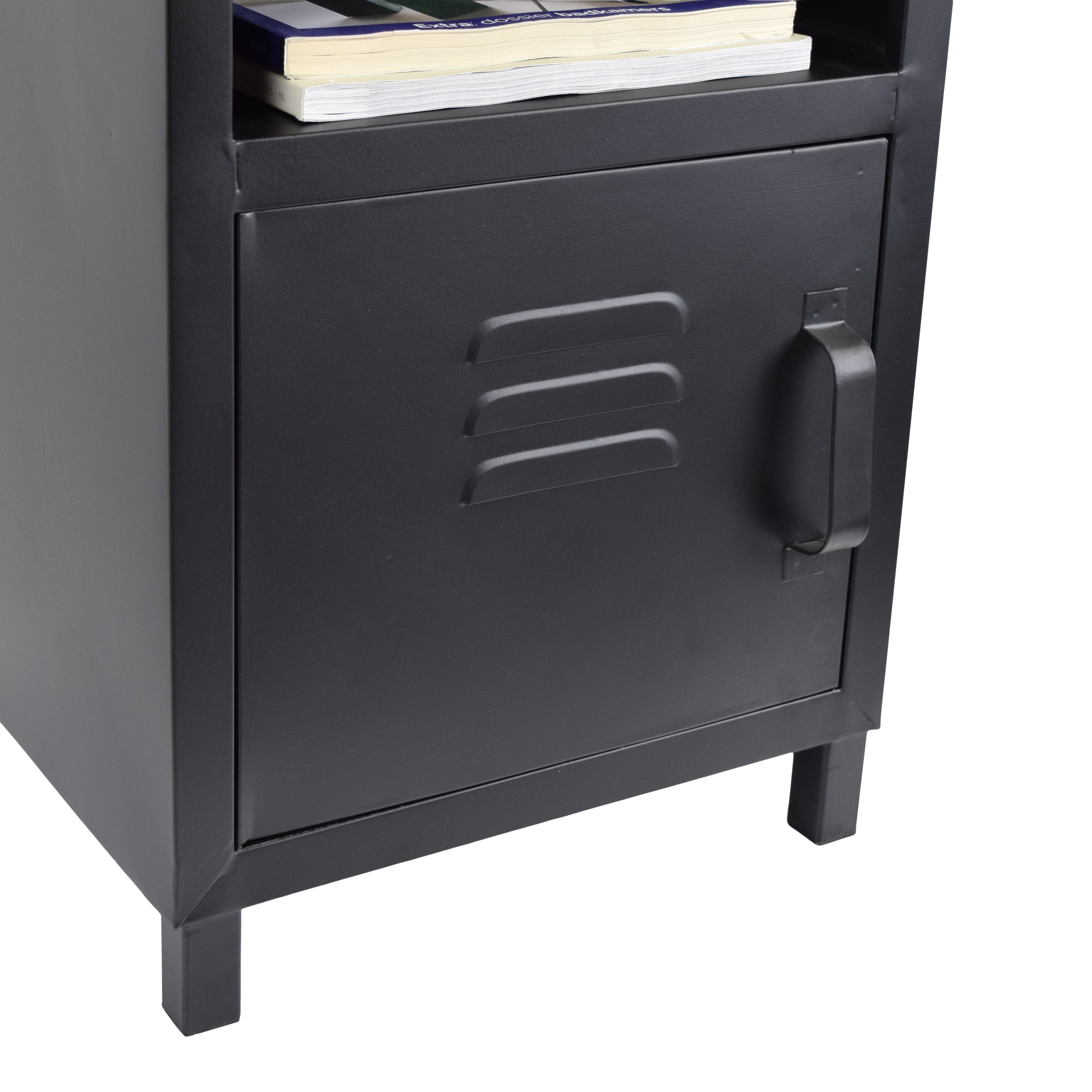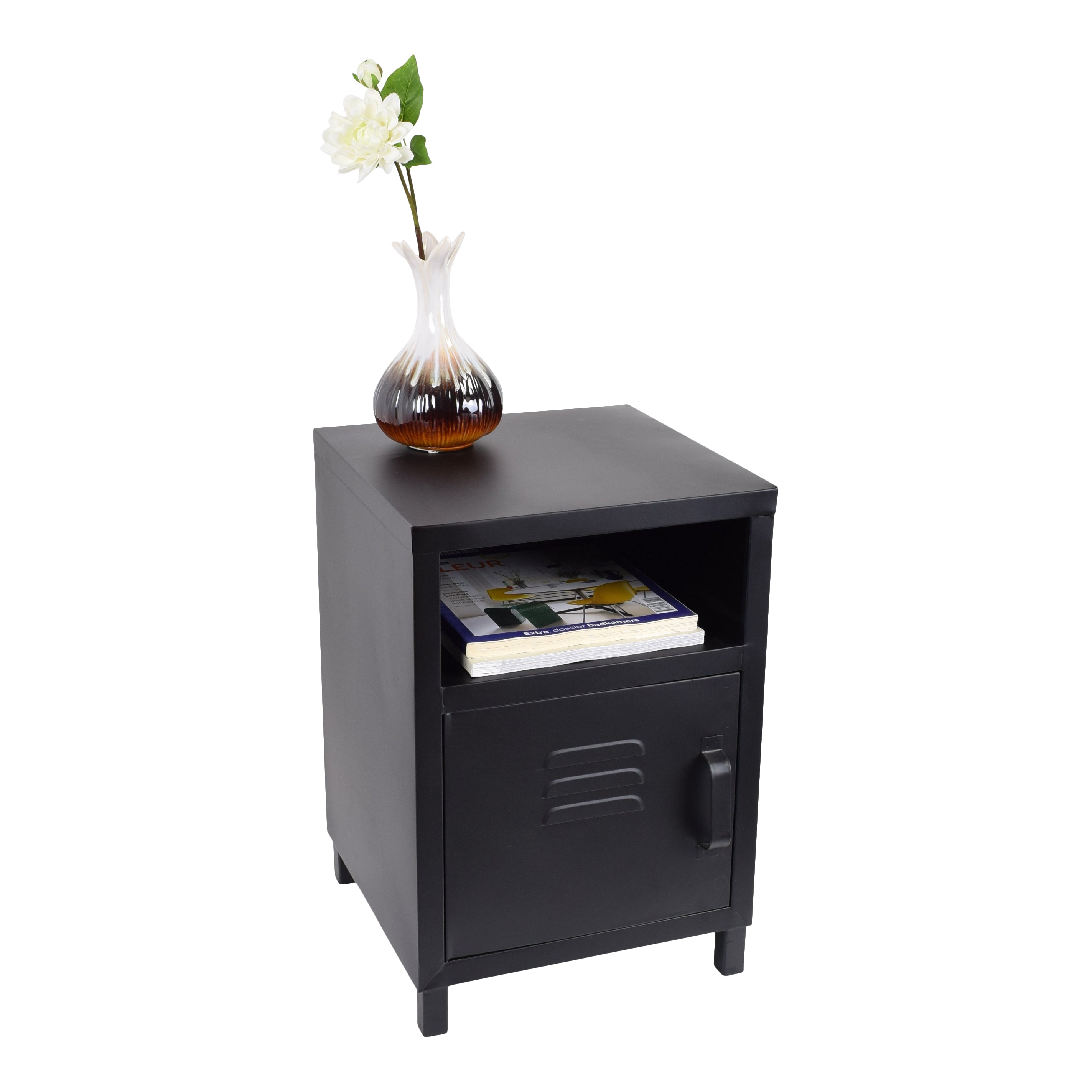 Dit stoere nachtkastje is vervaardigd uit gepoedercoat zwart metaal. Het nachtkastje heeft een deurtje met rooster die de industriele look helemaal compleet maakt.