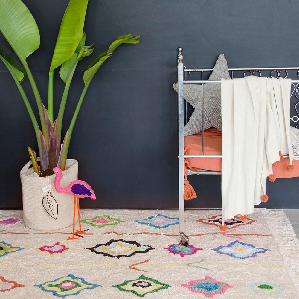 Lorena Canals maakt al bijna 20 jaar vloerkleden voor in de baby- en kinderkamer maar ook voor de andere ruimtes in huis. Naast vloerkleden heeft Lorena Canals ook andere accessoires als sierkussens opbergmanden en muurdecoratie. Alle vloerkleden zijn wasbaar, dat is wel zo handig als je kind een broodje pindakaas op je mooie vloerkleed uitsmeert. Met de vloerkleden van Lorena Canals is dat geen enkel probleem, je stopt ze gewoon in de wasmachine of als ze te groot zijn breng je hem naar de stomerij. Alle producten zijn handmade en fairtrade geproduceerd in India.