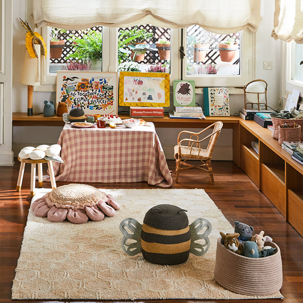Lorena Canals maakt al bijna 20 jaar vloerkleden voor in de baby- en kinderkamer maar ook voor de andere ruimtes in huis. Naast vloerkleden heeft Lorena Canals ook andere accessoires als sierkussens opbergmanden en muurdecoratie. Alle vloerkleden zijn wasbaar, dat is wel zo handig als je kind een broodje pindakaas op je mooie vloerkleed uitsmeert. Met de vloerkleden van Lorena Canals is dat geen enkel probleem, je stopt ze gewoon in de wasmachine of als ze te groot zijn breng je hem naar de stomerij. Alle producten zijn handmade en fairtrade geproduceerd in India.