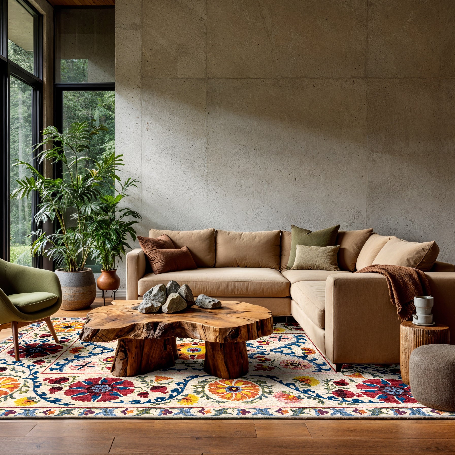 - Het Suzani vloerkleed vertelt een verhaal