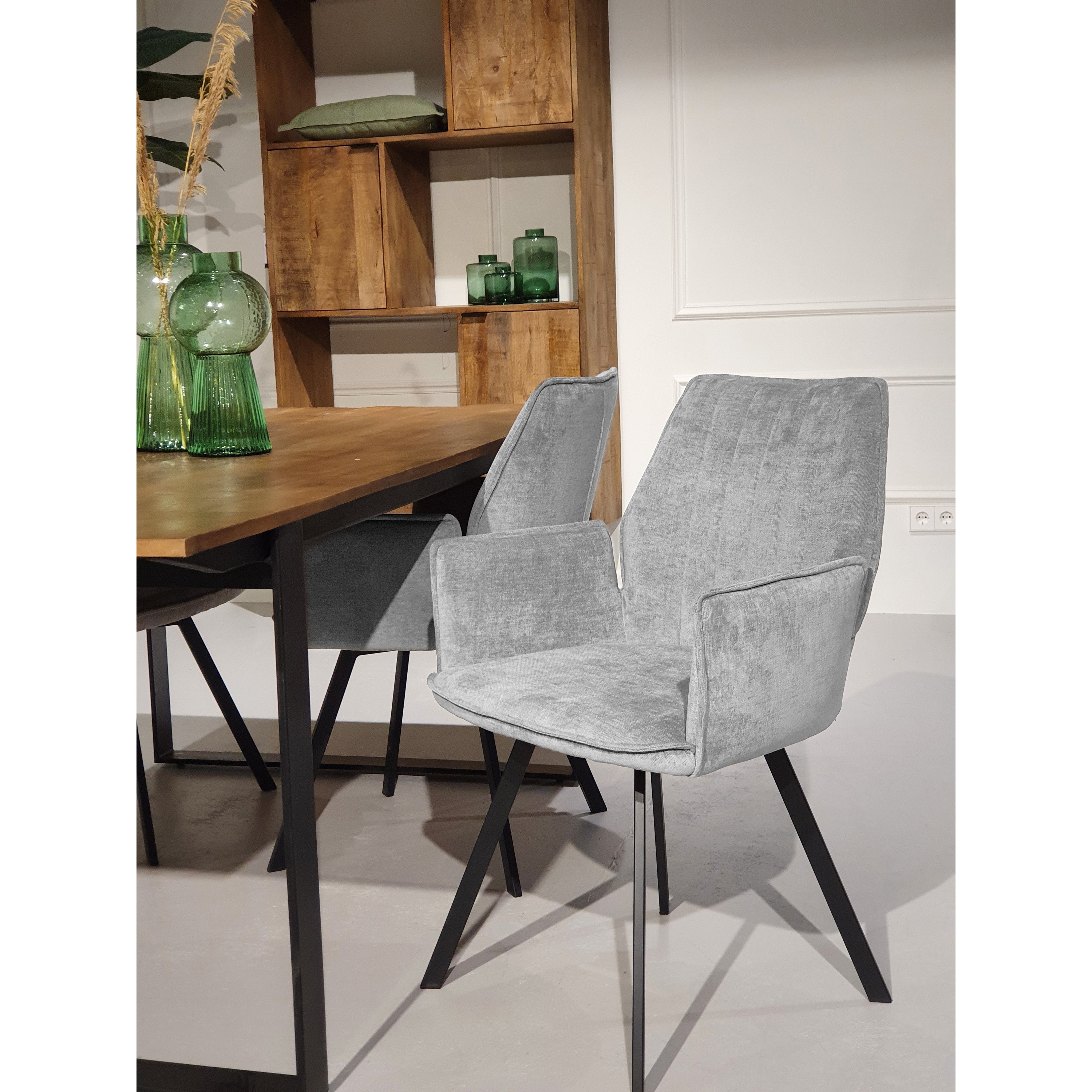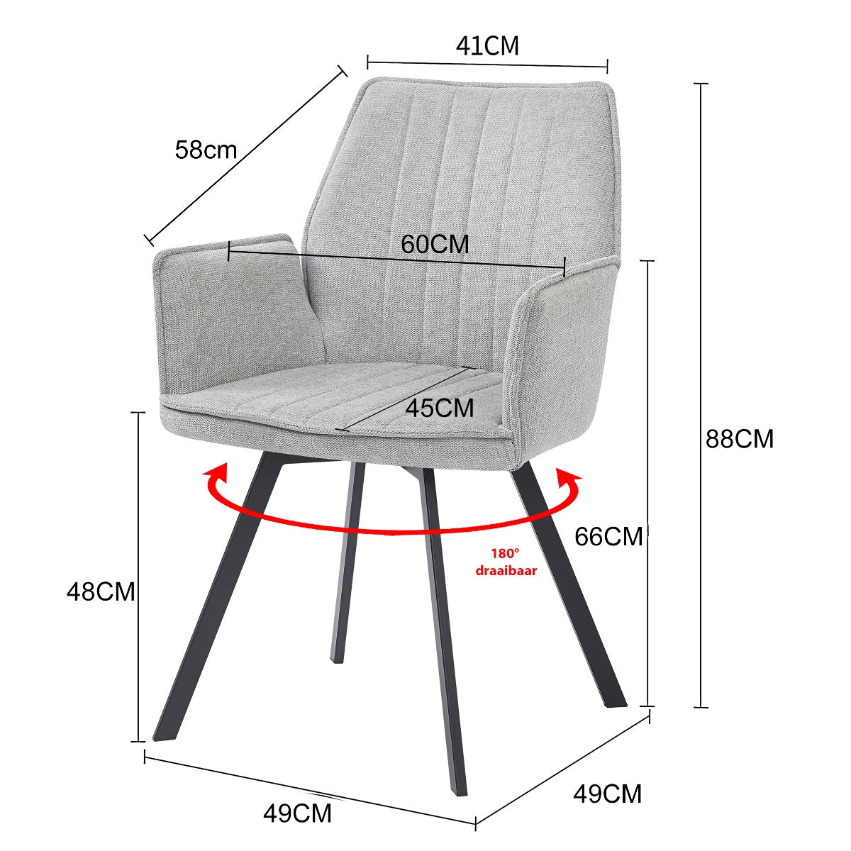 Deze chique eetkamerstoel Louise van LivingFurn voegt elegantie, moderniteit en comfort toe aan uw eetkamer. De beige bekleding met het gestikt patroon maakt de stoel uniek. Dankzij de kuipvorm, goed gevulde en ruime zitting en de armleuningen, kunt u tijdens het tafelen met familie en vrienden genieten van optimaal zitcomfort. Het onderstel van zwart gecoat staal geeft de eetkamerstoel stabiliteit, stevigheid een stoere look. Deze eetkamerstoel past in veel verschillende interieurstijlen, dankzij het moderne en toch tijdloze design. Deze eetkamerstoel is ook te verkrijgen in de kleuren beige en rood. Bekijk onze prachtige eetkamertafels om deze chique eetkamerstoel mee te combineren.