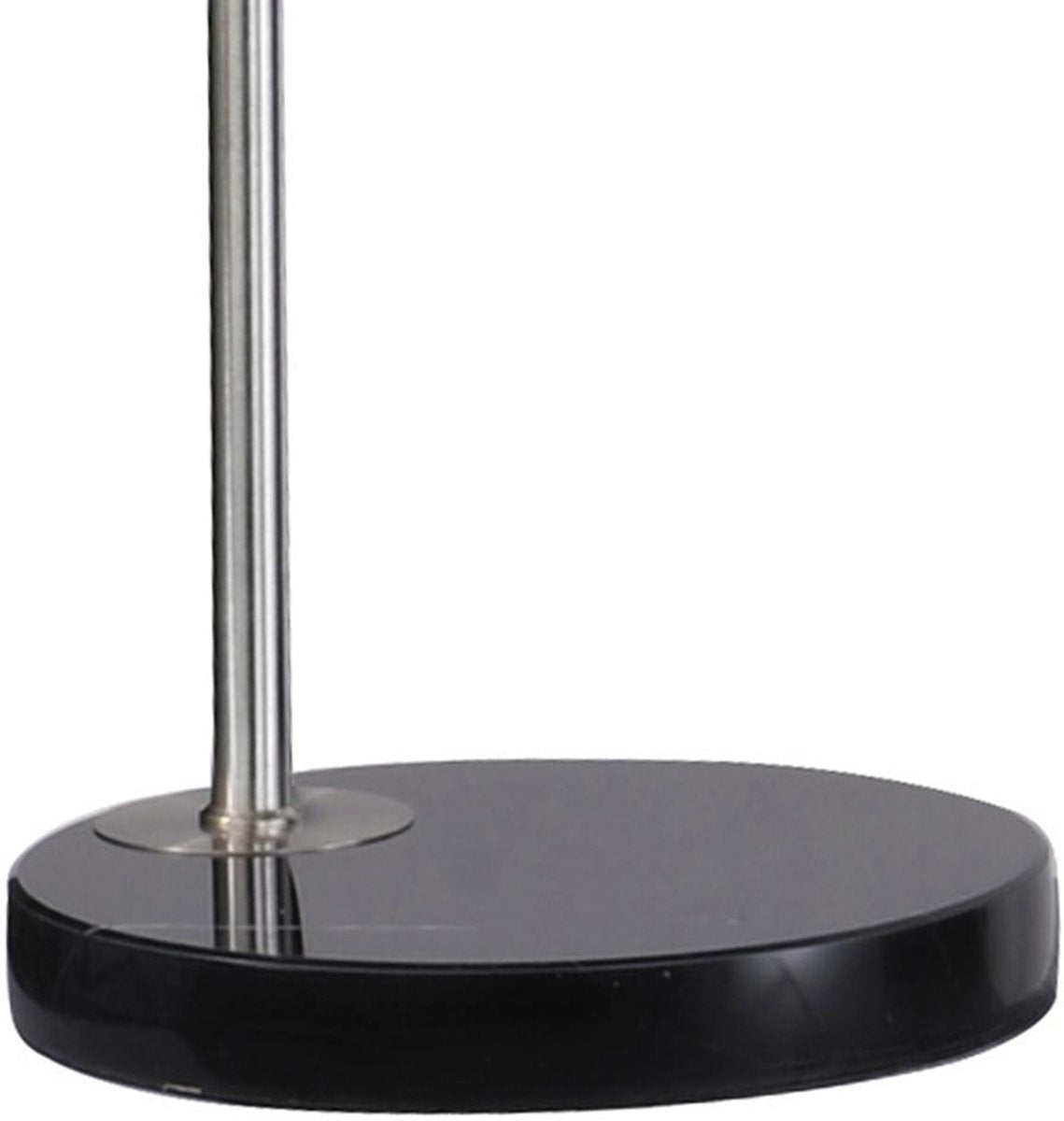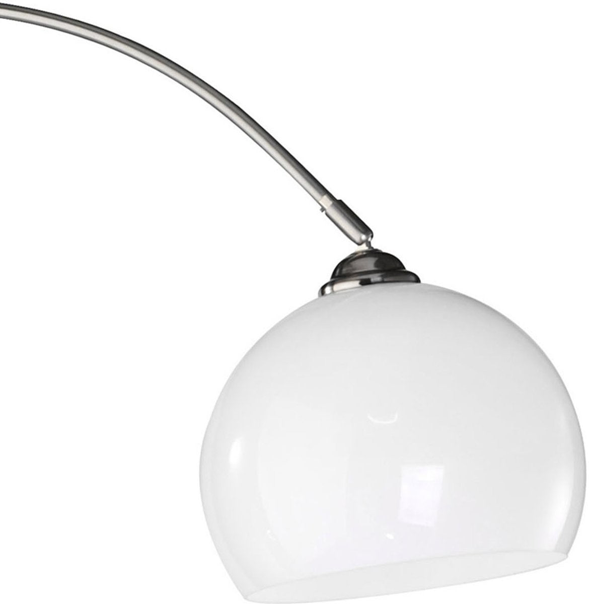Deze kleine booglamp heeft een aan en uit via de snoerschakelaar. De lamp is gemaakt van staal. Op de zwart marmeren voet zitten witte aderen. Hij staat stevig, ook als hij de maximale hoogte haalt van 193 centimeter. De booglamp is instelbaar qua hoogte dus ook te verlagen tot 153 centimeter. Het in hoogte verstellen gaat door middel van een sierlijke, kwalitatieve knop halverwege.