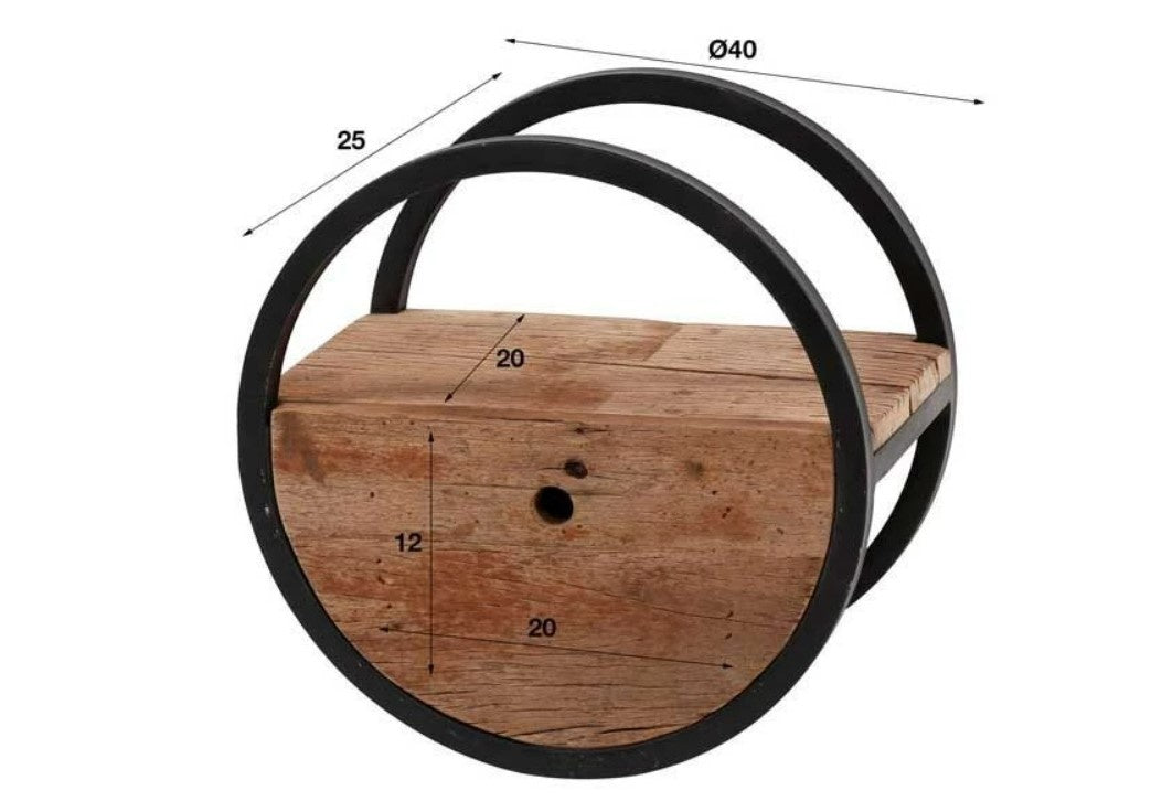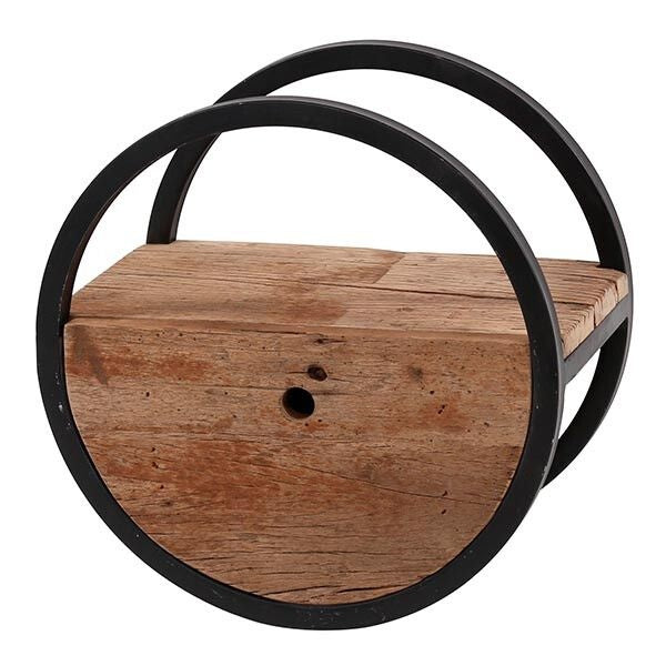 Wandschap Circular is gemaakt van zwart geschuurd metaal en robuust hardhout. De combinatie van zwart geschuurd metaal en robuust hardhout geeft dit wandrek een stoere en industriële uitstraling. Een absolute eye-catcher in jouw interieur. Dit metalen wandrek is voorzien van een lade en deze is niet alleen decoratief, maar ook nog eens heel functioneel. Boven de lade zit een hardhouten plankje die gedecoreerd kan worden met accessoires, zoals fotolijsten of plantjes.