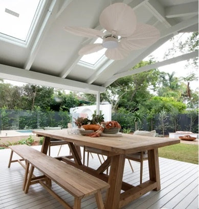 Haal de Caribische flair in huis met de Airfusion Bali plafondventilator van Lucci air. Met zijn grote bladen in de optiek van tropische bladeren zorgt de Bali al snel voor een aangenaam briesje en verkoeling in de hete maanden.