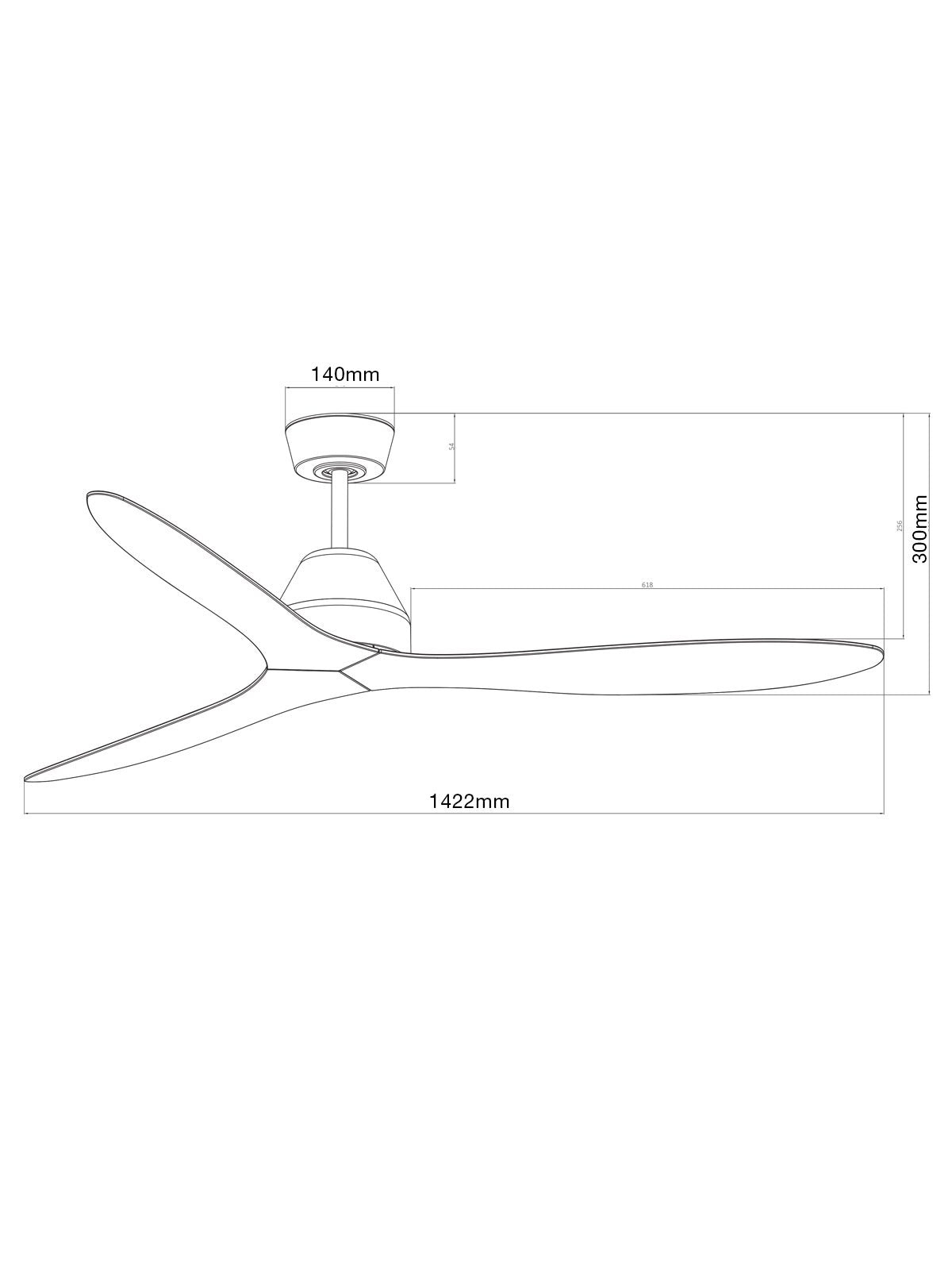 De Whitehaven plafondventilator heeft een zuinige DC-motor. De body en de drie ultra-platte bladen zijn allemaal zwart. Bij de levering inbegrepen is een afstandsbediening met 6 standen, waarmee je eenvoudig van zomer- naar wintermodus kunt overschakelen.