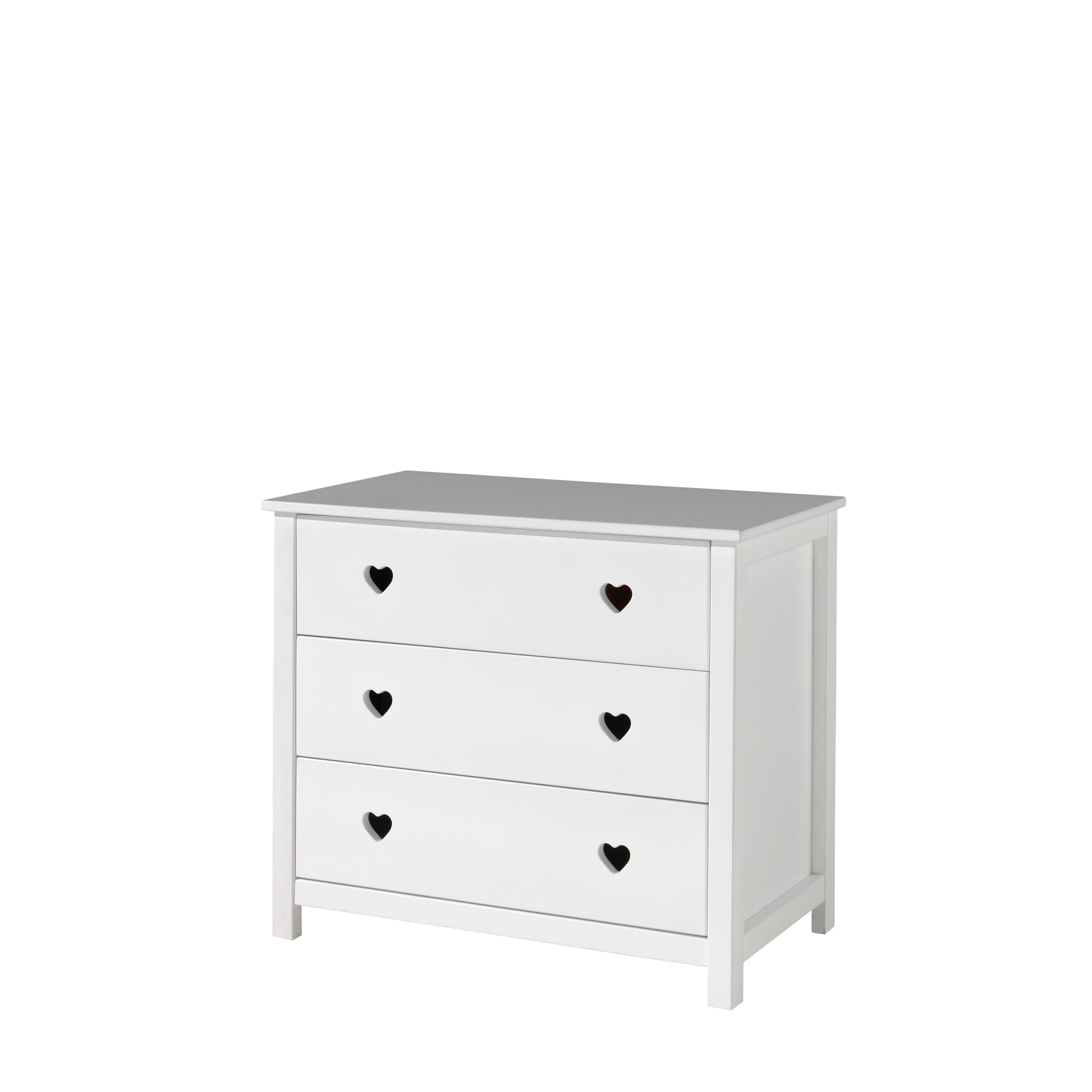 AMORI COMMODE met 3 lades in het wit. De sluiting is flexibel. Door de hartjes en de sierlijke afwerking, krijgt deze COMMODE een romantische uitstraling. Ontdek de belangrijkste kenmerken van dit product in onderstaande punten:
