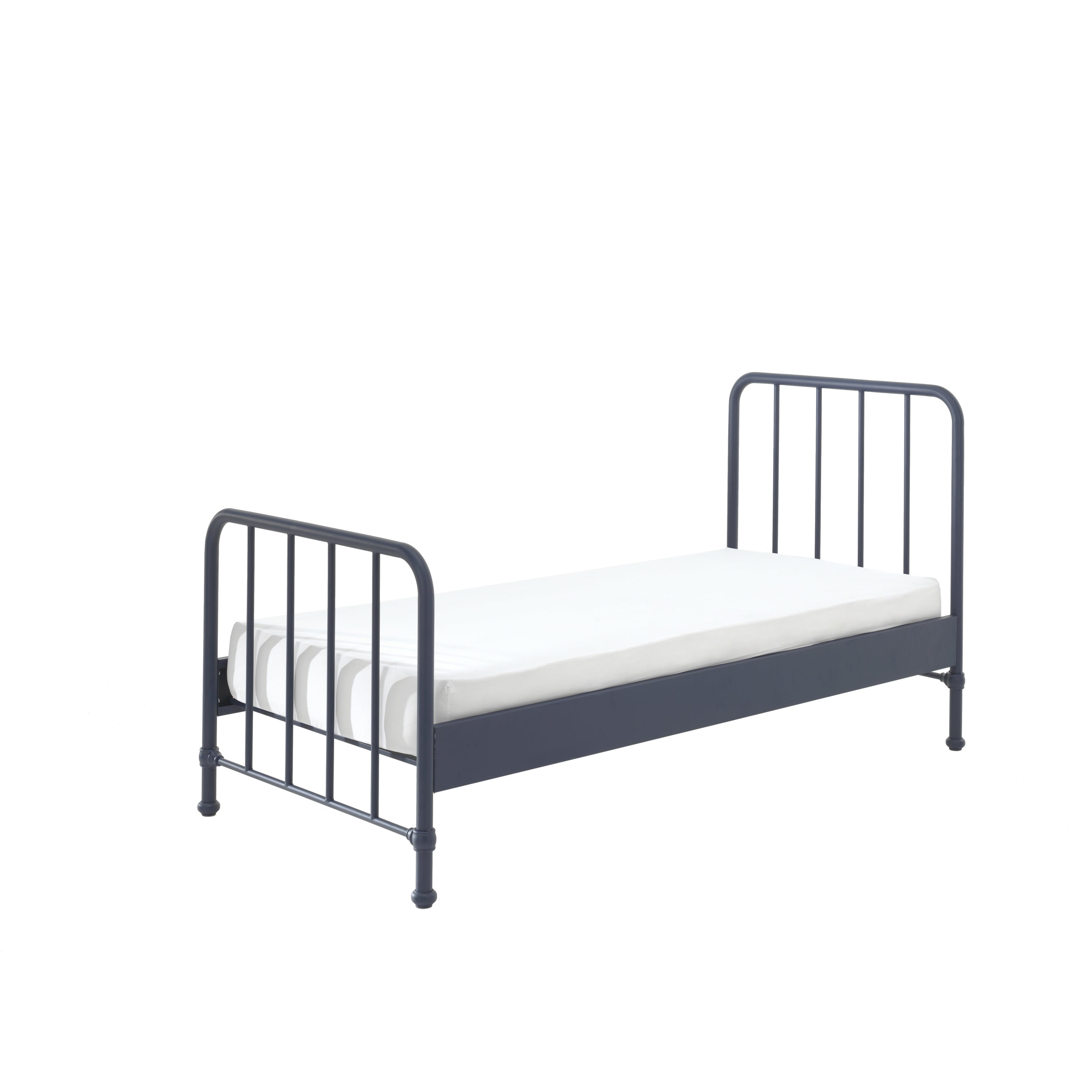Het BRONXX bed is eenmetalen bed van 90x200 cm. De afwerking in het mat blauw geeft het industrieeldesign een extra boost. De lattenbodem is inbegrepen. De metalen BRONXXnachttafel heeft een industriële look met een afwerking in het mat blauw. Ontdek de belangrijkste kenmerken van dit product in onderstaande punten:
