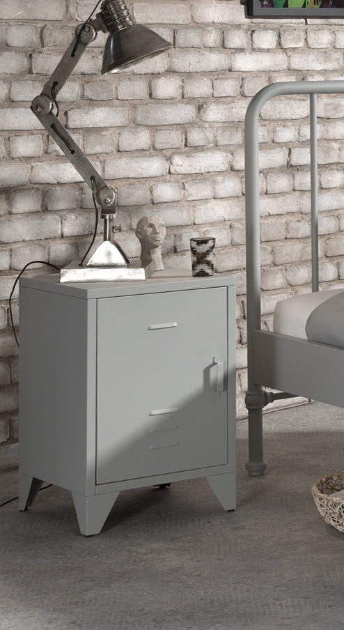 Het BRONXX bed is een metalen bed van 90x200 cm. De afwerking in het mat grijs geeft het industrieel design een extra boost. De lattenbodem is inbegrepen. De metalen BRONXX nachttafel heeft een industriële look met een afwerking in het mat lichtgrijs. Ontdek de belangrijkste kenmerken van dit product in onderstaande punten:
