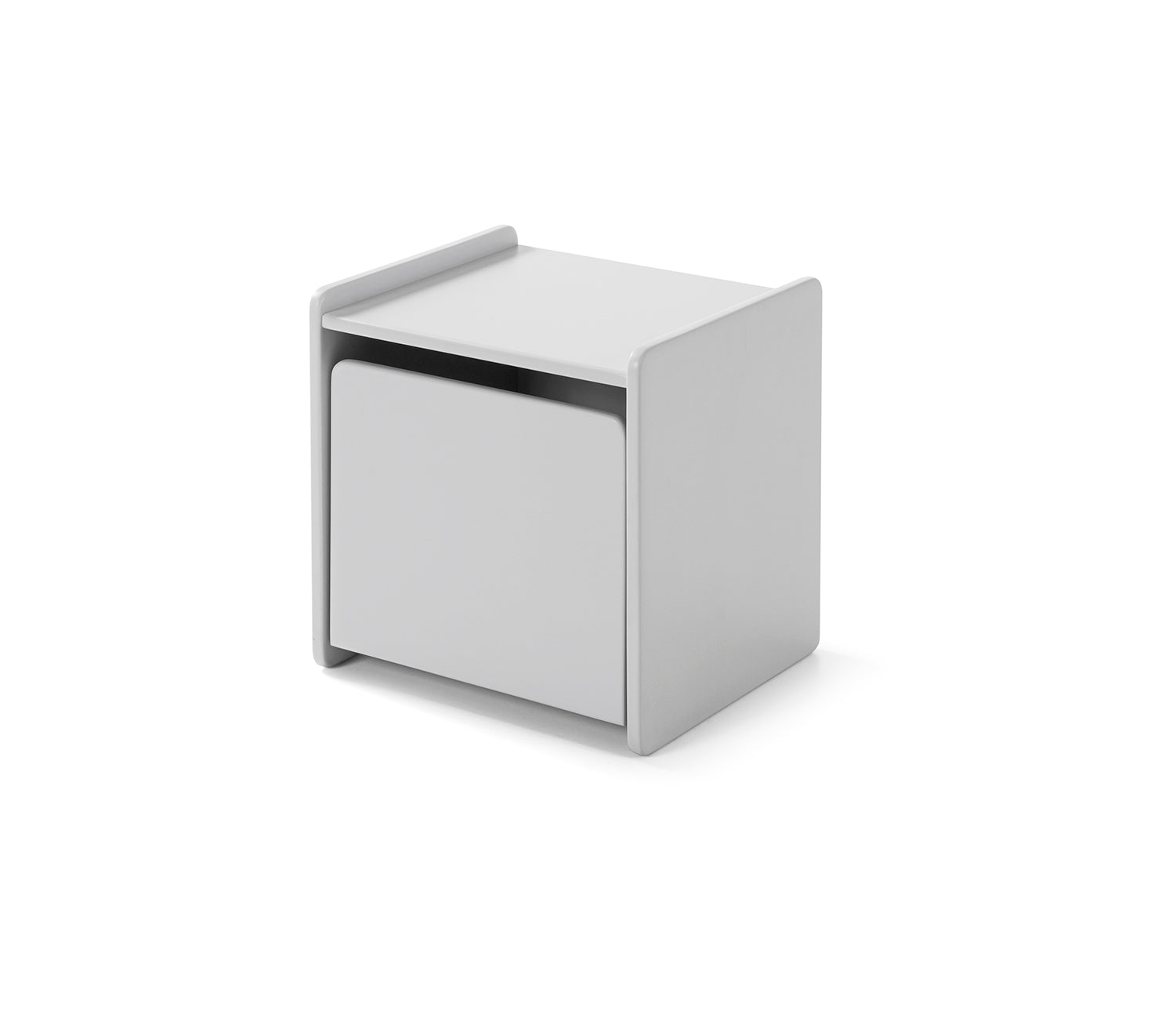 Deze KIDDY nachttafel in grijs past perfect bij het bijhorende bed uit deze collectie. Het is vervaardigd uit gelakte MDF in combinatie met massief grenen. Deze nachttafel heeft 1 deur en afgeronde randen. Ontdek de belangrijkste kenmerken van dit product in onderstaande punten: