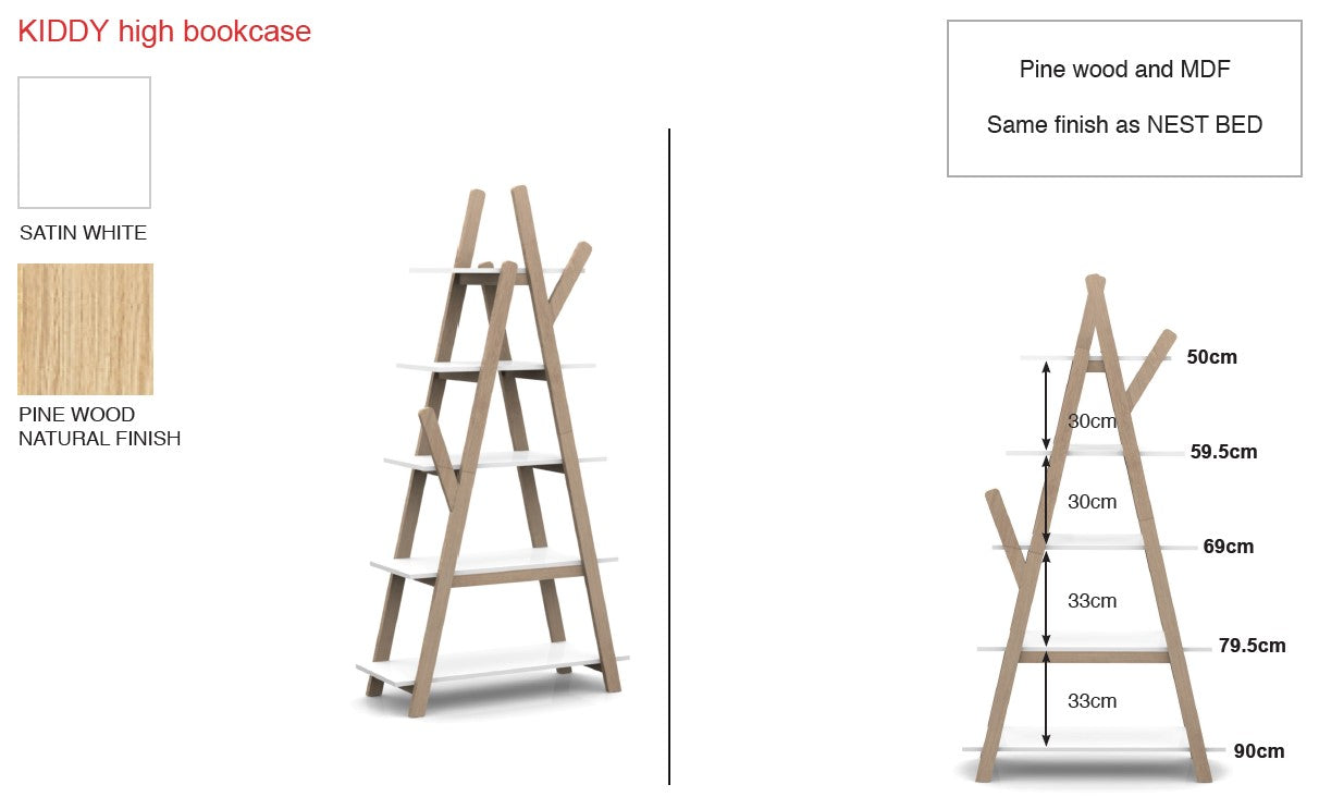 LUCEVI - Kinderkamer Kiddy Boekenkast - Hout - Wit - 90x34x168.7 cm
