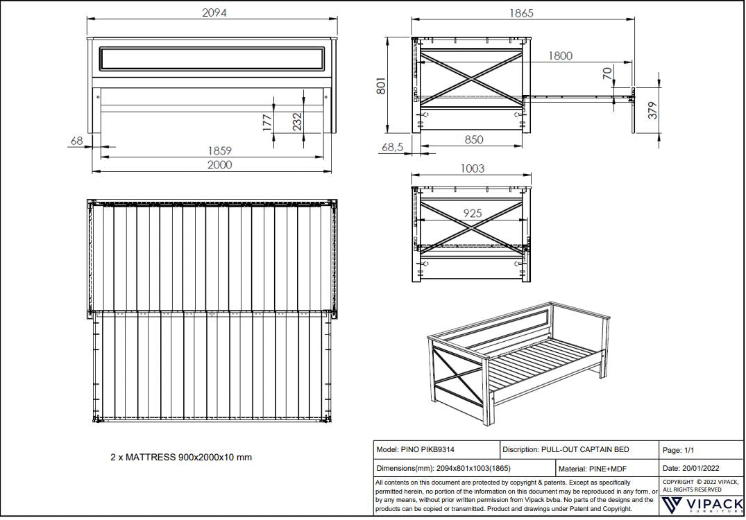Dit SCOTT kajuitbed is wit gelakt en gemaakt uit massief Scandinavisch grenen hout. De lattenbodem is inclusief en is geschikt voor een matras van 90 x 200 cm. Het kajuitbed kan ingezet worden als bedbank en wordt in een handomdraai uitgeklapt van een één- naar tweepersoonsbed (180 x 200 cm). Ontdek de belangrijkste kenmerken van dit product in onderstaande punten: