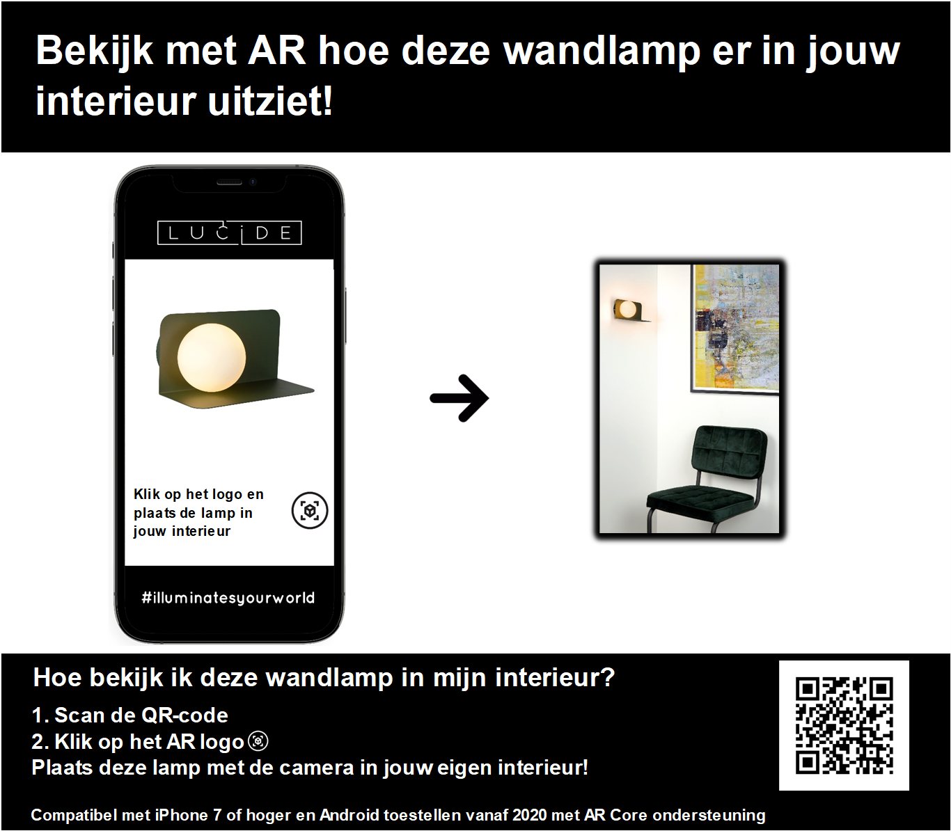 Richt de camera van je mobiele telefoon of tablet op de QR-code. Klik de link aan die in beeld verschijnt en het product wordt virtueel in je eigen huis geplaatst. Zo weet je zeker of het bij je past.