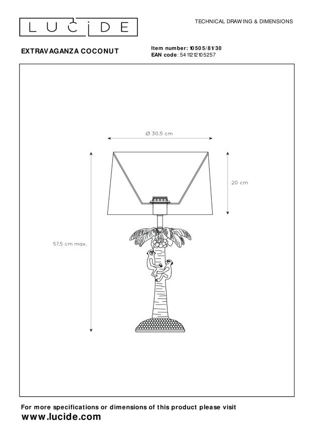Lucide EXTRAVAGANZA COCONUT Tafellamp - Zwart
