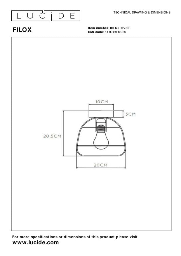 Van retro tot industriële interieurs: Filox kan zowat alle stijlen aan. Deze plafondlamp is met zijn afmetingen van 20 x 20 x 20,5 centimeter bijzonder compact en gezellig. De ovalen vorm, het ultralichte gewicht en het hoogwaardige metaal geven Filox een extra dimensie. Je hangt deze plafonnière eenvoudig op in de woonkamer, slaapkamer, keuken, hal, ... met de houten bevestigingsplaat van 3 centimeter dik. Sluit Filox aan op een dimmer voor de perfecte sfeer in iedere ruimte van het huis. Unieke productkenmerken: • Geschikt voor toepassing met LED lichtbron • Eenvoudig aan te sluiten op een dimmer (excl.) • Vervaardigd uit hoogwaardig metaal Belangrijke productkenmerken: • Verbruik: 1x40W / 230V / Dimbaar (lichtbron niet inbegrepen) • Afmetingen: Ø20 cm \ H.20,5 cm • 2 Jaar garantie op het armatuur / Passende lichtbron is EAN: 5411212491152 Waarom kiezen voor Lucide verlichting? Lucide staat voor trendsettend design, vakmanschap en betrouwbaarheid. Als Belgisch familiebedrijf met ruim drie decennia aan expertise ontwerpen wij hoogwaardige verlichting die elke ruimte – binnen én buiten – verrijkt en transformeert. Onze veelzijdige collectie omvat duurzame armaturen en energiezuinige lichtbronnen, zorgvuldig ontworpen door onze eigen experts en geproduceerd volgens de strengste CE-normen. Met ons uitgebreide assortiment bieden we jou altijd een geschikte lichtoplossing, ongeacht stijl of ruimte. Zo verlichten we niet enkel jouw leefruimte maar ook jouw keuzeproces in de zoektocht naar kwalitatieve betaalbare verlichting. Bij Lucide combineren we innovatie met vakmanschap, voor verlichting die niet alleen sfeer toevoegt, maar van ieder huis een thuis maakt.