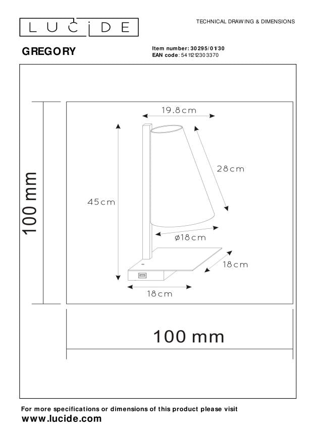 Verslind jij graag een hoofdstuk van een goed boek voor het slapengaan? Of scrol je liever nog even door je socials? Met Gregoy hoef je niet te kiezen. Deze elegante bedlamp fungeert als compact nachttafeltje met geïntegreerd USB-oplaadpunt. Het stalen frame is eenvoudig aan de muur te monteren zonder zichtbare bevestiging. De linnen lampenkamp biedt de zachtheid waar je 's avonds zo naar smacht. Luilekker liggen lezen op de sofa of in bed met Gregory aan je zijde. Het kan slechter. Unieke productkenmerken: • Geschikt voor toepassing met LED lichtbron • De lamp beschikt over USB-poorten voor het opladen van externe apparaten (USB-B & USB-C) Belangrijke productkenmerken: • Verbruik: 1x60W / 230V / Dimbaar (lichtbron niet inbegrepen) • Afmetingen: L.19,8 x B.18 x H.45 cm • 2 Jaar garantie op het armatuur / Passende lichtbron is EAN: 5411212491152 Waarom kiezen voor Lucide verlichting? Lucide staat voor trendsettend design, vakmanschap en betrouwbaarheid. Als Belgisch familiebedrijf met ruim drie decennia aan expertise ontwerpen wij hoogwaardige verlichting die elke ruimte – binnen én buiten – verrijkt en transformeert. Onze veelzijdige collectie omvat duurzame armaturen en energiezuinige lichtbronnen, zorgvuldig ontworpen door onze eigen experts en geproduceerd volgens de strengste CE-normen. Met ons uitgebreide assortiment bieden we jou altijd een geschikte lichtoplossing, ongeacht stijl of ruimte. Zo verlichten we niet enkel jouw leefruimte maar ook jouw keuzeproces in de zoektocht naar kwalitatieve betaalbare verlichting. Bij Lucide combineren we innovatie met vakmanschap, voor verlichting die niet alleen sfeer toevoegt, maar van ieder huis een thuis maakt.