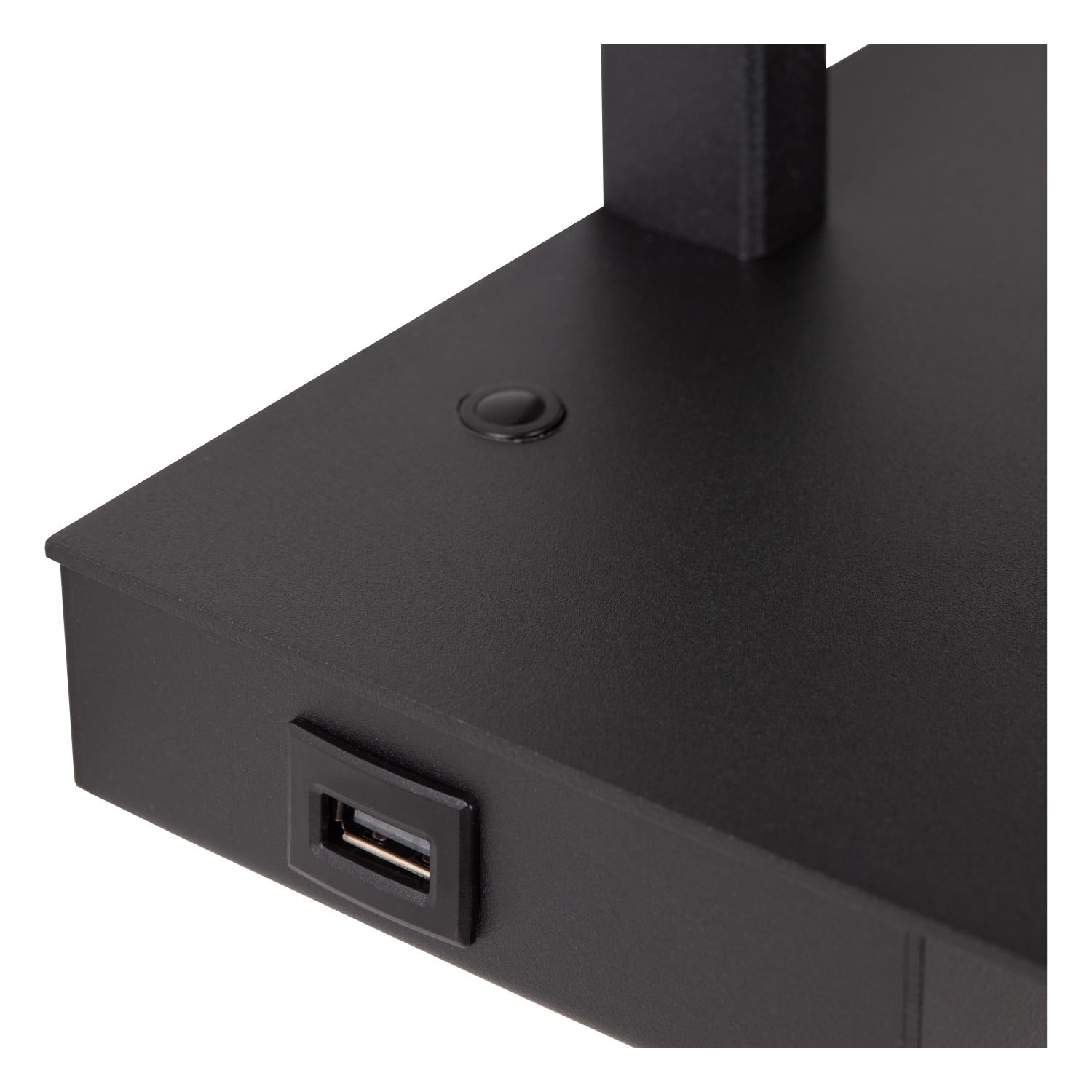Lucide GREGORY - Bedlamp / Wandlamp - 1xE27 - Met USB oplaadpunt - Zwart