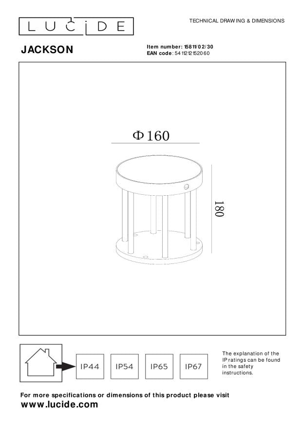 Een compacte lichttotem op je tuintafel zetten om nog langer van je avond te genieten? Maak kennis met Jackson. Deze tafellamp, vervaardigd uit hoogwaardig aluminium, brengt met zijn geïntegreerde ledlamp warm wit licht in je tuin. Via de dag acht-sensor gaat de schemerlamp automatisch aan als de avond valt. Je hoeft je gemoedelijke babbel, heerlijke maaltijd of gezond competitief gezelschapsspel dus zelfs niet te onderbreken om Jackson aan of uit te zetten. De transparante vormgeving met slanke aluminium spijlen bevordert de open sfeer. Unieke productkenmerken: • Uitgerust met geïntegreerde dimbare LED lamp • Uitgerust met warm wit licht (3000K) • Uitgerust met bewegingssensor en dag acht sensor • Vervaardigd uit hoogwaardig aluminium Belangrijke productkenmerken: • Speciaal ontworpen voor langdurig en betrouwbaar buitengebruik (Conform IP54) • Werkt op zonne-energie • Verbruik: 1x2W / 4V / Dimbaar (Lichtbron inbegrepen) • Afmetingen: Ø16 cm \ H.18 cm • 3 Jaar garantie op het armatuur Waarom kiezen voor Lucide verlichting? Lucide staat voor trendsettend design, vakmanschap en betrouwbaarheid. Als Belgisch familiebedrijf met ruim drie decennia aan expertise ontwerpen wij hoogwaardige verlichting die elke ruimte – binnen én buiten – verrijkt en transformeert. Onze veelzijdige collectie omvat duurzame armaturen en energiezuinige lichtbronnen, zorgvuldig ontworpen door onze eigen experts en geproduceerd volgens de strengste CE-normen. Met ons uitgebreide assortiment bieden we jou altijd een geschikte lichtoplossing, ongeacht stijl of ruimte. Zo verlichten we niet enkel jouw leefruimte maar ook jouw keuzeproces in de zoektocht naar kwalitatieve betaalbare verlichting. Bij Lucide combineren we innovatie met vakmanschap, voor verlichting die niet alleen sfeer toevoegt, maar van ieder huis een thuis maakt.