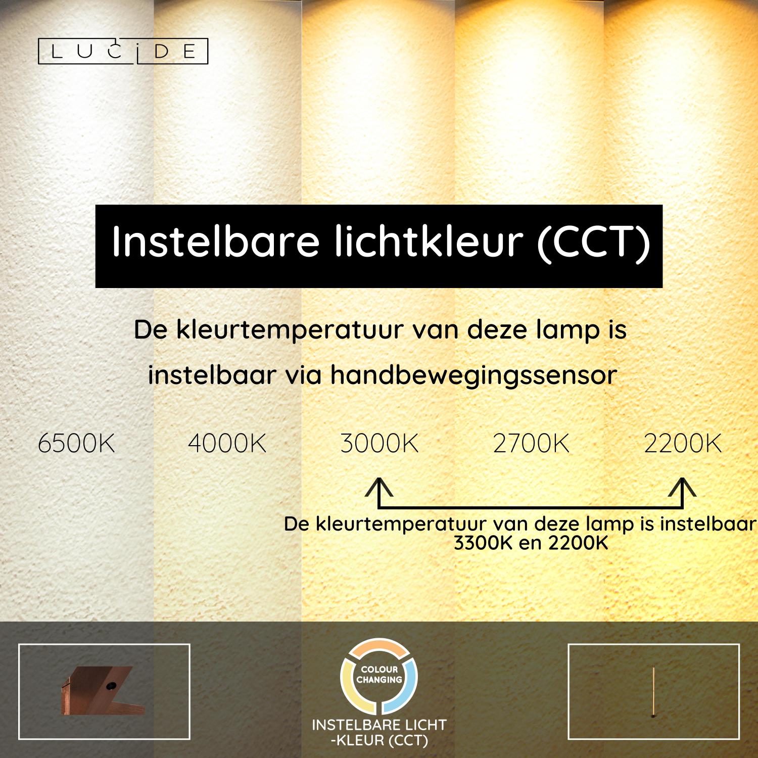 - Kleurtemperatuur instelbaar via handbewegingssensor (2200K-3300K)