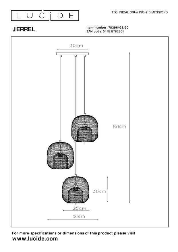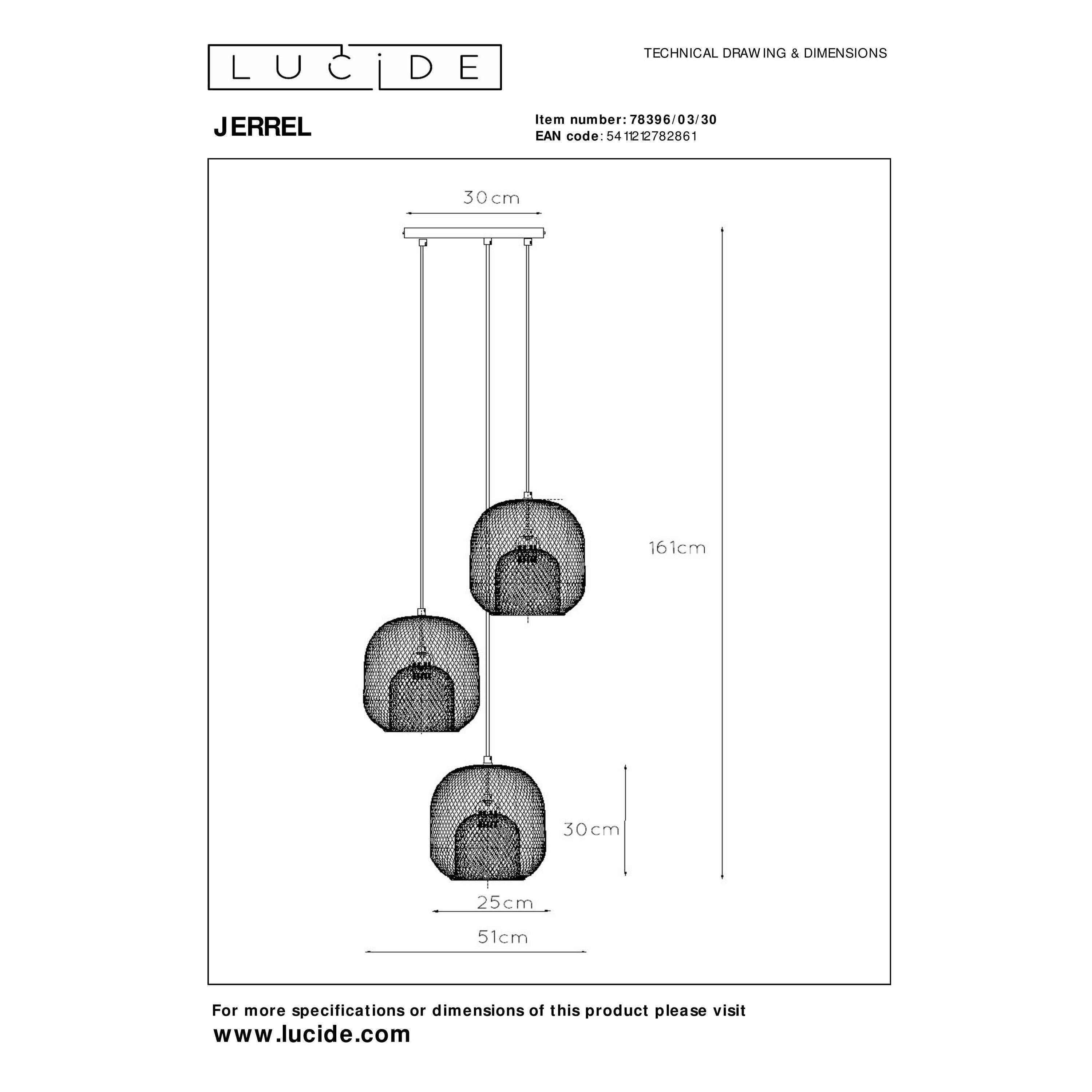 Het accent dat je woonkamer vervolledigt? Maak kennis met Jerrel. Deze hanglamp heeft drie lichtbronnen op verschillende hoogte, telkens uitgewerkt in een dubbele lampenkap. Licht glipt hier letterlijk door de mazen van het net. Zo staan de filamentlampen subtiel in de kijker. In combinatie met een dimmer speel je nog makkelijker met licht en reflectie. De pendellamp heeft een totale lengte van 161 centimeter en is 51 centimeter breed. Met Jerrel boven je salontafel valt geen enkele conversatie nog stil. Unieke productkenmerken: • Geschikt voor toepassing met LED lichtbronnen • Deze lamp is in hoogte verstelbaar • Eenvoudig aan te sluiten op een dimmer (excl.) • Vervaardigd uit hoogwaardig metaal Belangrijke productkenmerken: • Verbruik: 3x40W / 230V / Dimbaar (excl.) • Afmetingen: Ø51 cm \ H.161 cm • 2 Jaar garantie op het armatuur / Passende lichtbron is EAN: 5411212491046 Waarom Lucide verlichting kopen? Lucide ontwikkelt en produceert sinds haar oprichting in 1992 hoogwaardige en trend zettende lichtoplossingen. Deze 2 elementen zijn de basis voor het toonaangevend assortiment van het in Antwerpen gevestigde bedrijf. Een team van Lucide designers, aangevuld met freelance ontwerpers, ontwikkelen dagelijks tal van nieuwe producten. Innovatieve materiaalkeuze, vormgeving en kleurtoepassing in combinatie met de meest actuele lichttechnologie stelt Lucide daarbij continue centraal.