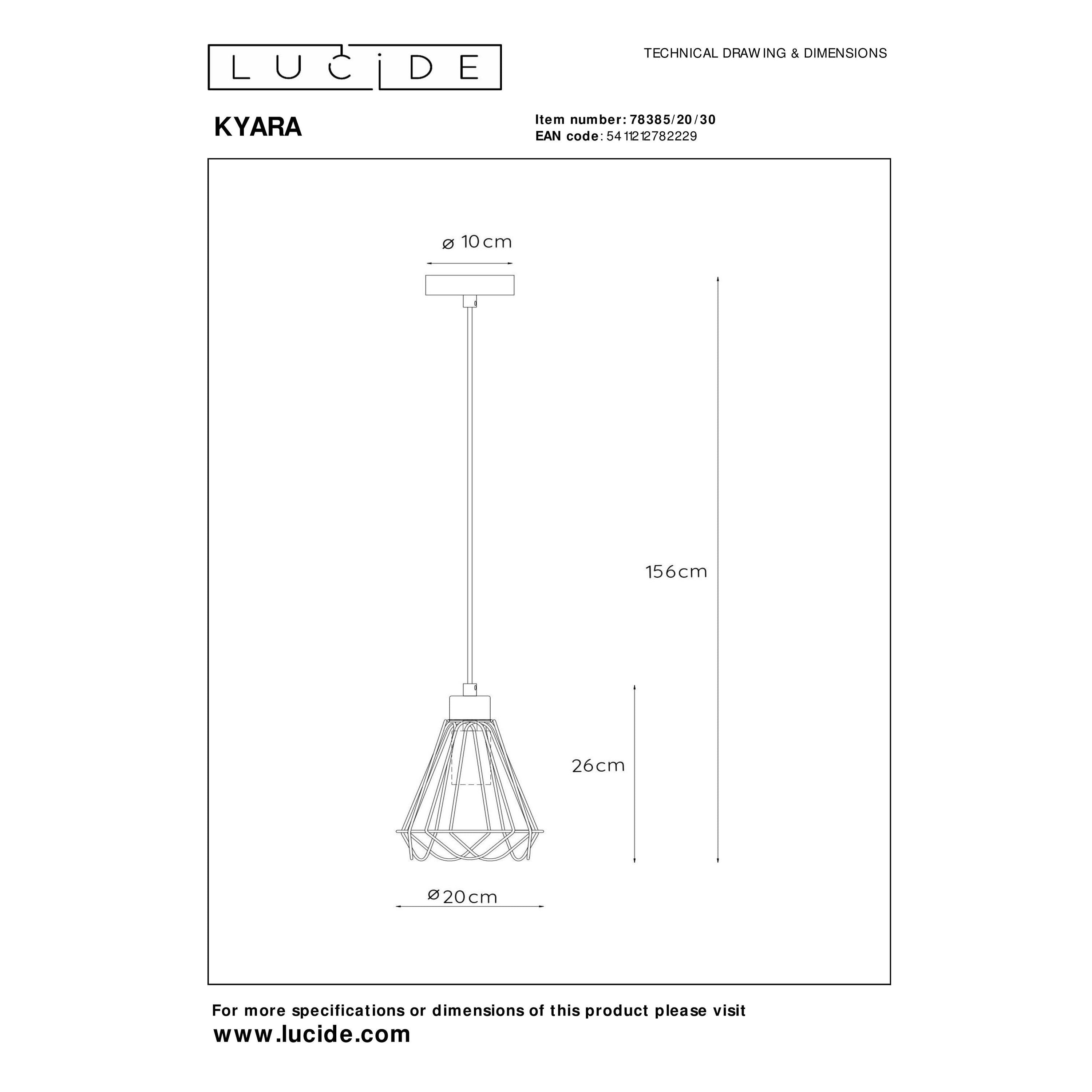 Een knappe hanglamp die perfect de nieuwe mode- en interieurtrends vat. Kyara combineert fijne lijnen in metaal met ruimte voor een sierlijke led filament lamp. Met de hedendaagse vormgeving kan je overal terecht. Deze knappe hanglamp hangt beeldig in je open leefruimte, boven je kookeiland of in je slaapkamer. Zeker als je er meerdere combineert is het resultaat verrassend. Unieke productkenmerken: • Geschikt voor toepassing met LED lichtbron • Deze lamp is in hoogte verstelbaar • Eenvoudig aan te sluiten op een dimmer (excl.) • Vervaardigd uit hoogwaardig metaal Belangrijke productkenmerken: • Verbruik: 1x60W / 230V / Dimbaar (excl.) • Afmetingen: Ø20 cm \ H.155 cm • 2 Jaar garantie op het armatuur / Passende lichtbron is EAN: 5411212491060 Waarom Lucide verlichting kopen? Lucide ontwikkelt en produceert sinds haar oprichting in 1992 hoogwaardige en trend zettende lichtoplossingen. Deze 2 elementen zijn de basis voor het toonaangevend assortiment van het in Antwerpen gevestigde bedrijf. Een team van Lucide designers, aangevuld met freelance ontwerpers, ontwikkelen dagelijks tal van nieuwe producten. Innovatieve materiaalkeuze, vormgeving en kleurtoepassing in combinatie met de meest actuele lichttechnologie stelt Lucide daarbij continue centraal.