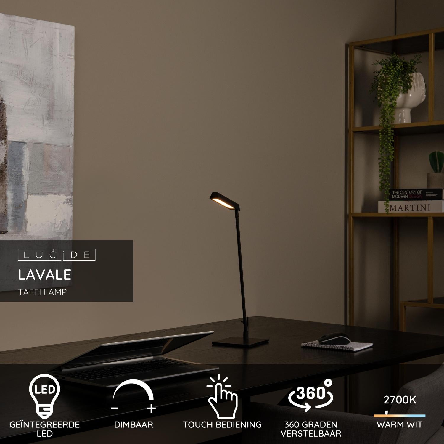 Lucide LAVALE - Bureaulamp - LED Dimb. - 1x3W 2700K - Zwart