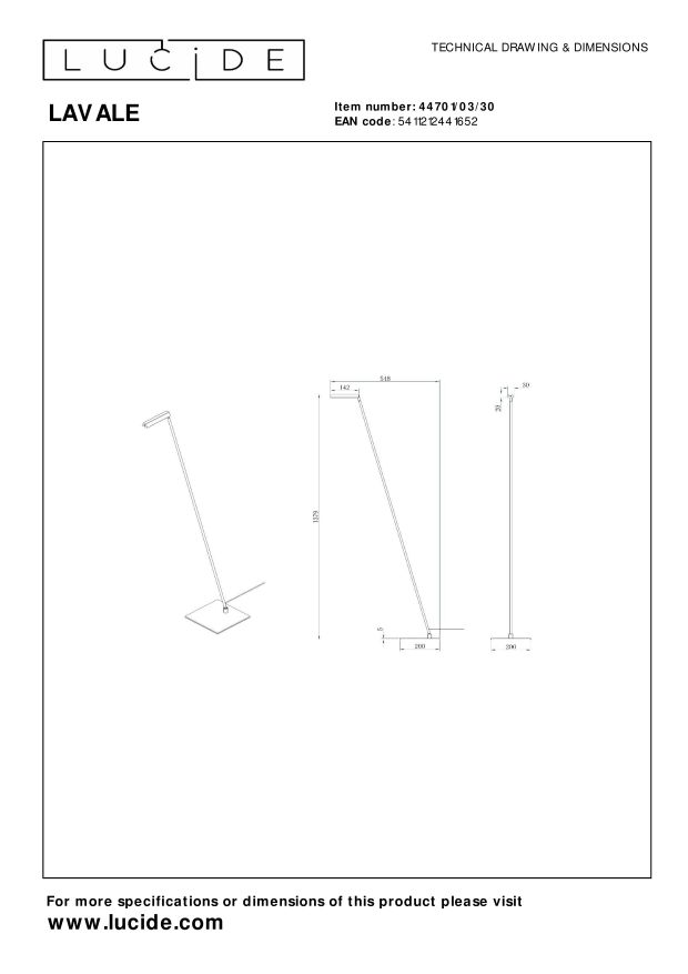 Streepje licht nodig? Haal je Lavale in huis. Zijn verfijnde uitvoering is haast ongezien. Letterlijk dan, want deze leeslamp in hoogwaardig metaal heeft een zeer smalle, onopvallende vormgeving. De staande lamp is zowel horizontaal 360°draaibaar als verticaal kantelbaar. Zo maak je komaf met ongewenste schaduwen. Lavale is bovendien uitgerust met extra warm wit licht dat je via de touchsensor op de lamp gemakkelijk bijstelt tot de gewenste sterkte. Zo transformeer je in een oogwenk van full focus naar ontspannend zenmoment. Lavale, subliem subtiel. Unieke productkenmerken: • Uitgerust met geïntegreerde dimbare LED lamp • Uitgerust met warm wit licht (2700K) • Deze lamp is draaibaar en kantelbaar • Dimbaar via 'touch' sensor op de lamp • Vervaardigd uit hoogwaardig metaal Belangrijke productkenmerken: • Verbruik: 1x3W / 230V / Dimbaar (Lichtbron inbegrepen) • Afmetingen: L.54,8 x B.20 x H.137,9 cm • 3 Jaar garantie op het armatuur Waarom kiezen voor Lucide verlichting? Lucide staat voor trendsettend design, vakmanschap en betrouwbaarheid. Als Belgisch familiebedrijf met ruim drie decennia aan expertise ontwerpen wij hoogwaardige verlichting die elke ruimte – binnen én buiten – verrijkt en transformeert. Onze veelzijdige collectie omvat duurzame armaturen en energiezuinige lichtbronnen, zorgvuldig ontworpen door onze eigen experts en geproduceerd volgens de strengste CE-normen. Met ons uitgebreide assortiment bieden we jou altijd een geschikte lichtoplossing, ongeacht stijl of ruimte. Zo verlichten we niet enkel jouw leefruimte maar ook jouw keuzeproces in de zoektocht naar kwalitatieve betaalbare verlichting. Bij Lucide combineren we innovatie met vakmanschap, voor verlichting die niet alleen sfeer toevoegt, maar van ieder huis een thuis maakt.