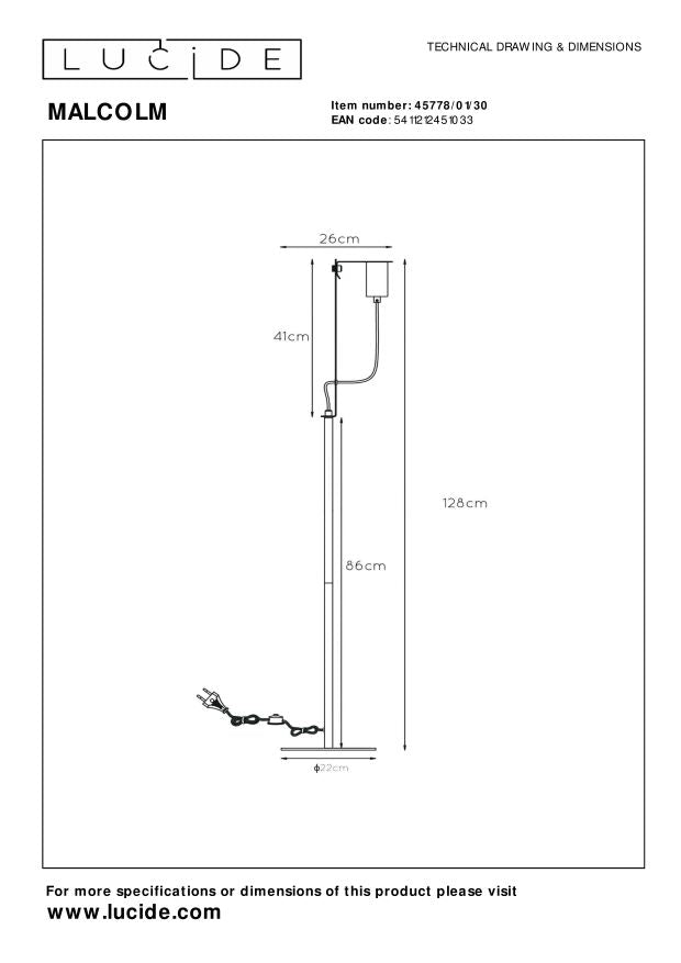 Lucide MALCOLM - Vloerlamp - 1xE27 - Zwart