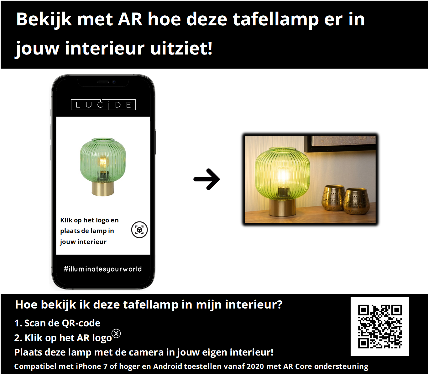 Richt de camera van je mobiele telefoon of tablet op de QR-code. Klik de link aan die in beeld verschijnt en het product wordt virtueel in je eigen huis geplaatst. Zo weet je zeker of het bij je past.