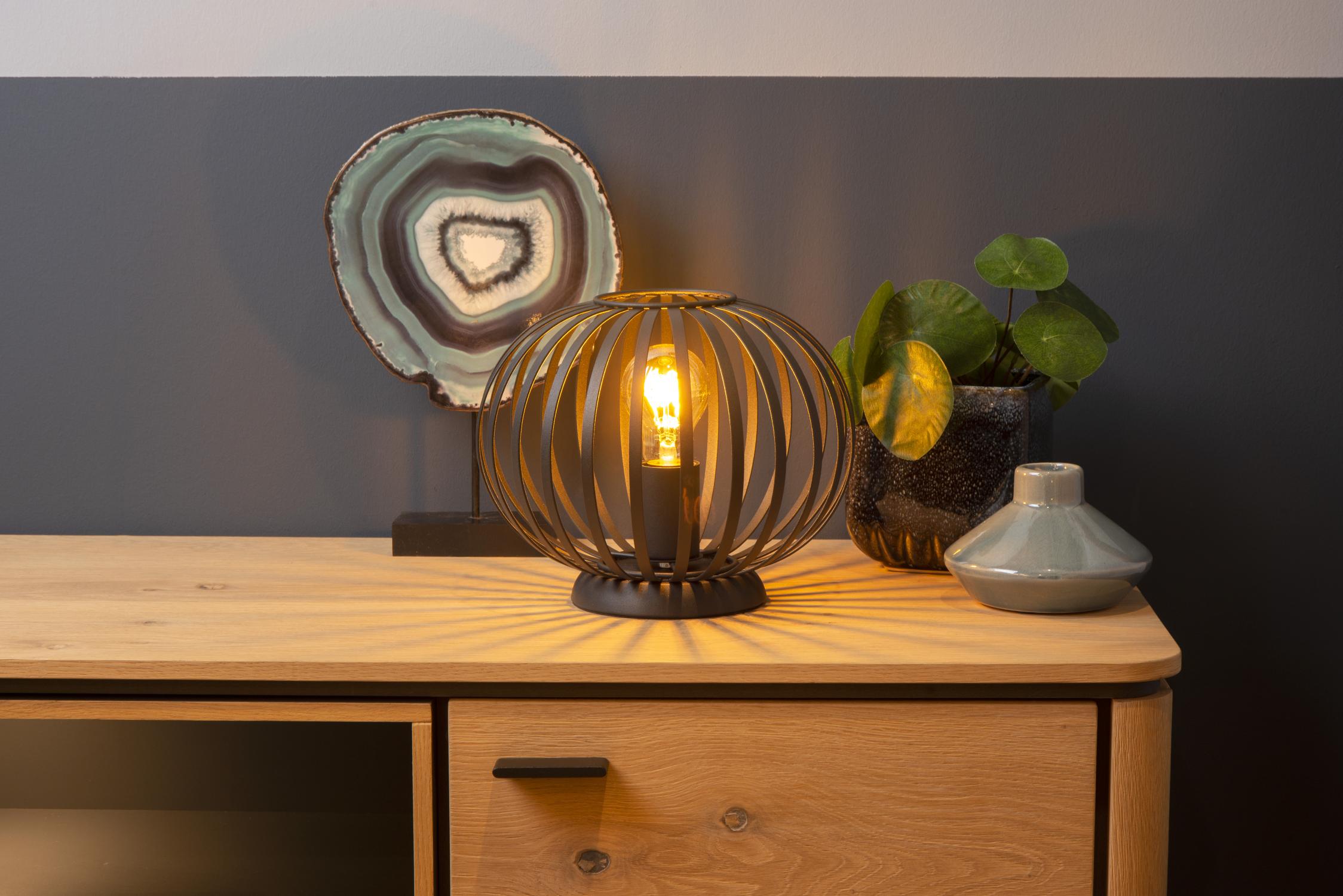 Een modern tafellampje dat er bovendien ook nog eens leuk uitziet? Manuela combineert beide eigenschappen zonder problemen. Een metalen bolvormige banden beschermen de lichtbron en laten het licht ontsnappen. Door haar vormgeving en de hoogwaardige materialen past Manuela perfect in een modern interieur, maar kan ze ook gecombineerd worden met landelijke elementen. Je kan deze tafellamp eenvoudig aan- en uitzetten via de schakelaar in het snoer. Combineer Manuela met een bolvormige ledlamp voor een optimaal effect in de ruimte. Unieke productkenmerken: • Geschikt voor toepassing met LED lichtbron • Bedienbaar via aan/uit schakelaar in het snoer • Vervaardigd uit hoogwaardig metaal Belangrijke productkenmerken: • Verbruik: 1x40W / 230V / (lichtbron niet inbegrepen) • Afmetingen: Ø25 cm \ H.21 cm • 2 Jaar garantie op het armatuur / Passende lichtbron is EAN: 5411212491152 Waarom kiezen voor Lucide verlichting? Lucide staat voor trendsettend design, vakmanschap en betrouwbaarheid. Als Belgisch familiebedrijf met ruim drie decennia aan expertise ontwerpen wij hoogwaardige verlichting die elke ruimte – binnen én buiten – verrijkt en transformeert. Onze veelzijdige collectie omvat duurzame armaturen en energiezuinige lichtbronnen, zorgvuldig ontworpen door onze eigen experts en geproduceerd volgens de strengste CE-normen. Met ons uitgebreide assortiment bieden we jou altijd een geschikte lichtoplossing, ongeacht stijl of ruimte. Zo verlichten we niet enkel jouw leefruimte maar ook jouw keuzeproces in de zoektocht naar kwalitatieve betaalbare verlichting. Bij Lucide combineren we innovatie met vakmanschap, voor verlichting die niet alleen sfeer toevoegt, maar van ieder huis een thuis maakt.