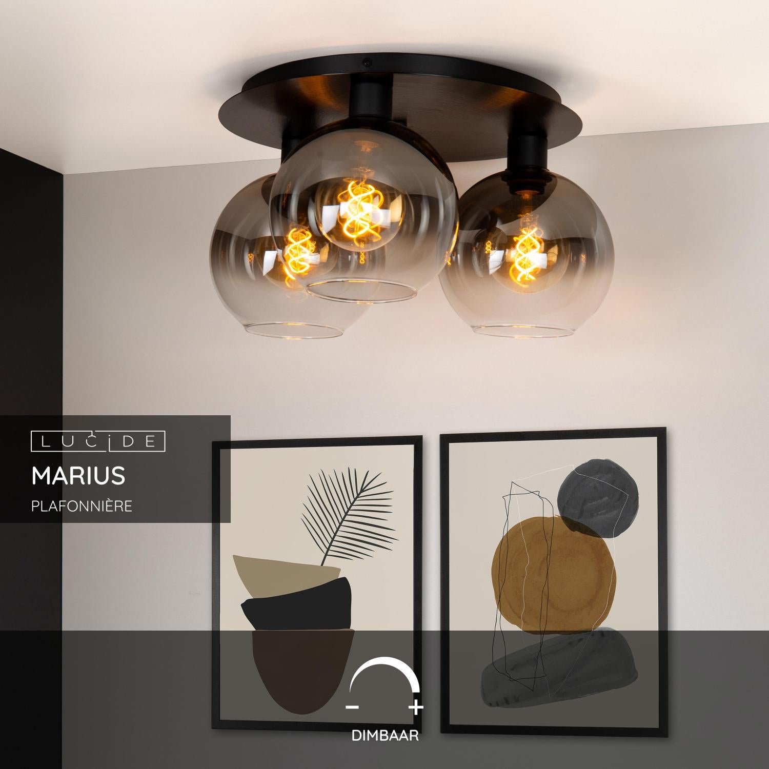 Wie is die diva in drievoud? Aangename kennismaking, de naam is Marius. Met zijn retro jasje is deze plafondlamp een blijver, ook in een strak, modern interieur. Op speelse wijze toont hij zijn ware gelaat in de vorm van een filamentlamp omgeven door fumé glas. Met een diameter van 50 centimeter en 22 centimeter hoogte kan je niet om Marius heen kijken, ook al hangt hij hoog en droog aan je plafond. Door hem te koppelen op een externe dimmer regel je in 1-2-3 de kracht van zijn licht. Unieke productkenmerken: • Geschikt voor toepassing met LED lichtbronnen • Eenvoudig aan te sluiten op een dimmer (excl.) • Vervaardigd uit hoogwaardig glas Belangrijke productkenmerken: • Verbruik: 3x60W / 230V / Dimbaar (lichtbronnen niet inbegrepen) • Afmetingen: L.50 x B.50 x H.24,5 cm • 2 Jaar garantie op het armatuur / Passende lichtbron is EAN: 5411212491046 Waarom kiezen voor Lucide verlichting? Lucide staat voor trendsettend design, vakmanschap en betrouwbaarheid. Als Belgisch familiebedrijf met ruim drie decennia aan expertise ontwerpen wij hoogwaardige verlichting die elke ruimte – binnen én buiten – verrijkt en transformeert. Onze veelzijdige collectie omvat duurzame armaturen en energiezuinige lichtbronnen, zorgvuldig ontworpen door onze eigen experts en geproduceerd volgens de strengste CE-normen. Met ons uitgebreide assortiment bieden we jou altijd een geschikte lichtoplossing, ongeacht stijl of ruimte. Zo verlichten we niet enkel jouw leefruimte maar ook jouw keuzeproces in de zoektocht naar kwalitatieve betaalbare verlichting. Bij Lucide combineren we innovatie met vakmanschap, voor verlichting die niet alleen sfeer toevoegt, maar van ieder huis een thuis maakt.