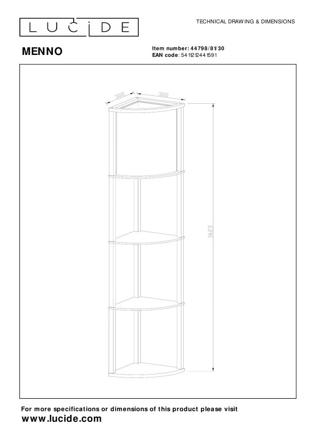 Menno is meer dan zomaar een vloerlamp. De armatuur uit hoogwaardig mdf doet dienst als elegant etagerek waarop je boeken, decoratie of je mooiste kamerplant uitstalt. Met een hoogte van zo'n 162 centimeter heb je heel wat ruimte voor al dat moois. De staande lamp is afgewerkt met een katoenen lampenkap die een zacht, gedempt licht verspreidt. Door zijn driehoekige vorm is Menno ideaal om kale hoeken in je kamer sfeervol aan te kleden. De lamp bedienen doe je met een handige, nostalgische trekschakelaar. Unieke productkenmerken: • Geschikt voor toepassing met LED lichtbron • Eenvoudig bedienbaar via trekschakelaar • Vervaardigd uit hoogwaardig mdf Belangrijke productkenmerken: • Verbruik: 1x60W / 230V / (lichtbron niet inbegrepen) • Afmetingen: L.30 x B.30 x H.162,3 cm • 2 Jaar garantie op het armatuur / Passende lichtbron is EAN: 5411212491152 Waarom kiezen voor Lucide verlichting? Lucide staat voor trendsettend design, vakmanschap en betrouwbaarheid. Als Belgisch familiebedrijf met ruim drie decennia aan expertise ontwerpen wij hoogwaardige verlichting die elke ruimte – binnen én buiten – verrijkt en transformeert. Onze veelzijdige collectie omvat duurzame armaturen en energiezuinige lichtbronnen, zorgvuldig ontworpen door onze eigen experts en geproduceerd volgens de strengste CE-normen. Met ons uitgebreide assortiment bieden we jou altijd een geschikte lichtoplossing, ongeacht stijl of ruimte. Zo verlichten we niet enkel jouw leefruimte maar ook jouw keuzeproces in de zoektocht naar kwalitatieve betaalbare verlichting. Bij Lucide combineren we innovatie met vakmanschap, voor verlichting die niet alleen sfeer toevoegt, maar van ieder huis een thuis maakt.
