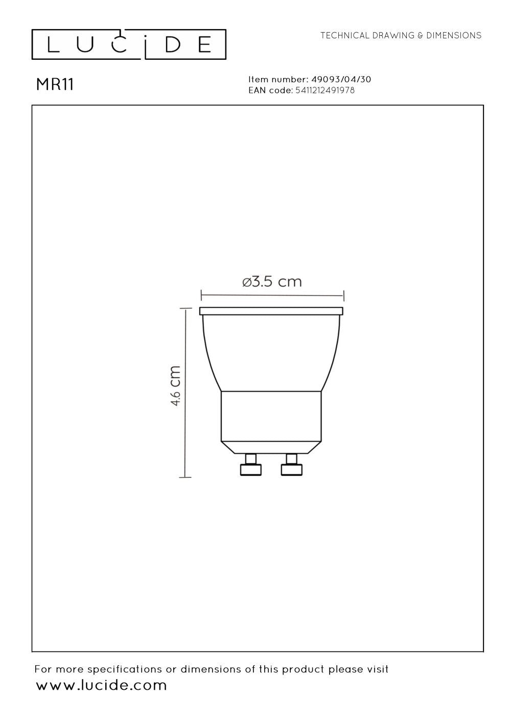 Op zoek naar een compacte en veelzijdige led lamp voor je binnenverlichting? De Lucide MR11 led lamp combineert energiezuinigheid met sfeervolle verlichting. Deze dimbare GU10 led lichtbron van 4W biedt een lichtopbrengst van 280 lumen en een dim-to-warm functie, waarmee je de kleurtemperatuur instelt van warm wit (3000K) naar extra warm licht (2200K). Ideaal voor spotverlichting, accentverlichting of decoratieve toepassingen in je interieur. Met een diameter van 3,5 cm past deze led lamp moeiteloos in diverse armaturen. Ontdek de voordelen van Lucide led lampen en geniet van duurzame verlichting met stijl. Unieke productkenmerken: • Type lichtbron: GU10 (MR11) / LED • Verbruik: 4W / 230V • Lichtopbrengst van 280 lumen • Dim to warm, dimt naar warmere kleurtemperatuur (2200K) • Deze lichtbron is dimbaar Waarom kiezen voor Lucide verlichting? Lucide staat voor trendsettend design, vakmanschap en betrouwbaarheid. Als Belgisch familiebedrijf met ruim drie decennia aan expertise ontwerpen wij hoogwaardige verlichting die elke ruimte – binnen én buiten – verrijkt en transformeert. Onze veelzijdige collectie omvat duurzame armaturen en energiezuinige lichtbronnen, zorgvuldig ontworpen door onze eigen experts en geproduceerd volgens de strengste CE-normen. Met ons uitgebreide assortiment bieden we jou altijd een geschikte lichtoplossing, ongeacht stijl of ruimte. Zo verlichten we niet enkel jouw leefruimte maar ook jouw keuzeproces in de zoektocht naar kwalitatieve betaalbare verlichting. Bij Lucide combineren we innovatie met vakmanschap, voor verlichting die niet alleen sfeer toevoegt, maar van ieder huis een thuis maakt.