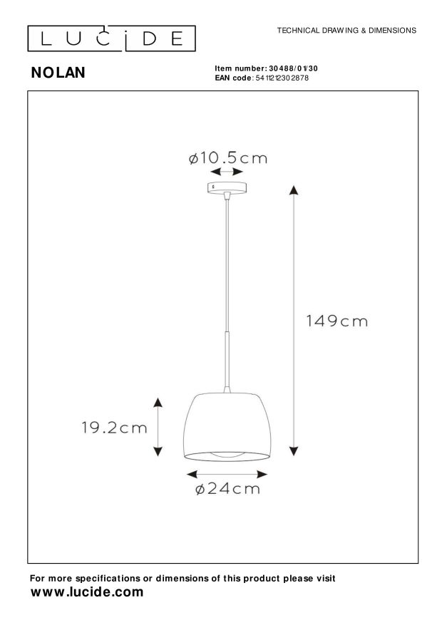 Hou je van indirect licht in een strakke omkadering? Dan is Nolan zeker iets voor jou. Deze subtiele hanglamp laat niet in zijn kaarten kijken en beschermt zijn lichtbron met een metalen, ronde koker. Nolan is in hoogte verstelbaar, tot 166,2 centimeter. De ideale pendellamp boven je salontafel, een kleine eettafel of keukentafel. Bovendien is het licht afgeschermd met een ronde schaal en schijnt het nooit rechtstreeks in je ogen. Voor een optimaal effect koppel je Nolan aan een dimmer en geniet op elk moment van de juiste intensiteit. Unieke productkenmerken: • Geschikt voor toepassing met LED lichtbron • Deze lamp is in hoogte verstelbaar • Eenvoudig aan te sluiten op een dimmer (excl.) • Vervaardigd uit hoogwaardig metaal Belangrijke productkenmerken: • Verbruik: 1x60W / 230V / Dimbaar (lichtbron niet inbegrepen) • Afmetingen: Ø24 cm \ H.149 cm • 2 Jaar garantie op het armatuur / Passende lichtbron is EAN: 5411212491152 Waarom kiezen voor Lucide verlichting? Lucide staat voor trendsettend design, vakmanschap en betrouwbaarheid. Als Belgisch familiebedrijf met ruim drie decennia aan expertise ontwerpen wij hoogwaardige verlichting die elke ruimte – binnen én buiten – verrijkt en transformeert. Onze veelzijdige collectie omvat duurzame armaturen en energiezuinige lichtbronnen, zorgvuldig ontworpen door onze eigen experts en geproduceerd volgens de strengste CE-normen. Met ons uitgebreide assortiment bieden we jou altijd een geschikte lichtoplossing, ongeacht stijl of ruimte. Zo verlichten we niet enkel jouw leefruimte maar ook jouw keuzeproces in de zoektocht naar kwalitatieve betaalbare verlichting. Bij Lucide combineren we innovatie met vakmanschap, voor verlichting die niet alleen sfeer toevoegt, maar van ieder huis een thuis maakt.