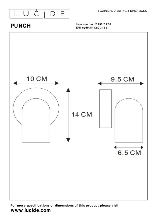 Een spot die jaren meegaat en moeiteloos integreert in elk interieur? Punch werpt het licht waar jij het hebben wil, want hij is wendbaar in alle richtingen. Met deze wandspot zet je je mooiste schilderij of je unieke wandmeubel in de schijnwerpers. Of plaats hem in de hal, het kleine kamertje of aan de trap. Hij volgt je voetsporen overal. Door hem te koppelen aan een externe dimmer creëer je de ideale sfeer op elk moment. Bovendien is Punch met zo'n 10 centimeter breedte bijzonder subtiel. Unieke productkenmerken: • Geschikt voor toepassing met LED lichtbron • Deze lamp is draaibaar en kantelbaar • Eenvoudig aan te sluiten op een dimmer (excl.) • Vervaardigd uit hoogwaardig metaal Belangrijke productkenmerken: • Verbruik: 1x35W / 240V / Dimbaar (lichtbron niet inbegrepen) • Afmetingen: L.14 x B.10 x H.9,5 cm • 2 Jaar garantie op het armatuur / Passende lichtbron is EAN: 5411212490643 Waarom kiezen voor Lucide verlichting? Lucide staat voor trendsettend design, vakmanschap en betrouwbaarheid. Als Belgisch familiebedrijf met ruim drie decennia aan expertise ontwerpen wij hoogwaardige verlichting die elke ruimte – binnen én buiten – verrijkt en transformeert. Onze veelzijdige collectie omvat duurzame armaturen en energiezuinige lichtbronnen, zorgvuldig ontworpen door onze eigen experts en geproduceerd volgens de strengste CE-normen. Met ons uitgebreide assortiment bieden we jou altijd een geschikte lichtoplossing, ongeacht stijl of ruimte. Zo verlichten we niet enkel jouw leefruimte maar ook jouw keuzeproces in de zoektocht naar kwalitatieve betaalbare verlichting. Bij Lucide combineren we innovatie met vakmanschap, voor verlichting die niet alleen sfeer toevoegt, maar van ieder huis een thuis maakt.